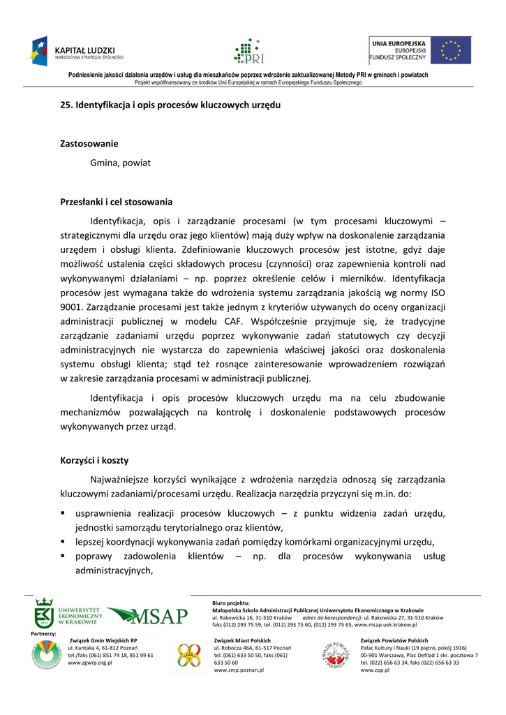 25. Identyfikacja i opis procesów kluczowych urzędu Zastosowanie