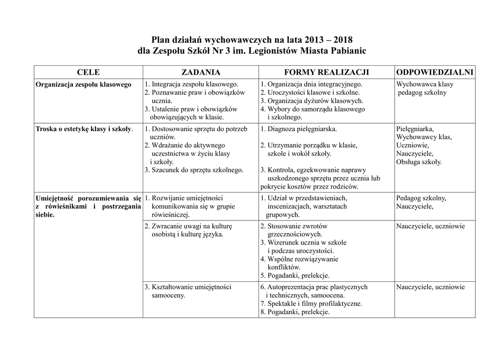 Plan działań wychowawczych - Zespół Szkół Nr 3 w Pabianicach