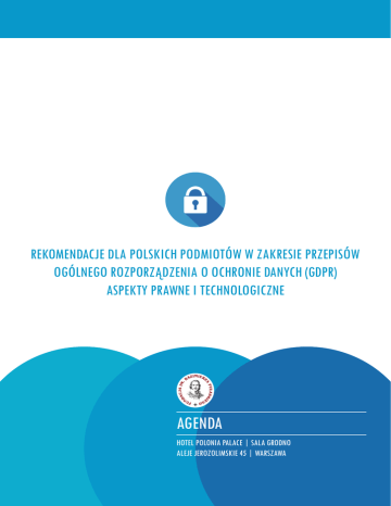 REKOMENDACJE DLA POLSKICH PODMIOTÓW W ZAKRESIE PRZEPISÓW OGÓLNEGO ROZPORZĄDZENIA O OCHRONIE DANYCH (GDPR) ASPEKTY PRAWNE I TECHNOLOGICZNE AGENDA HOTEL POLONIA PALACE | SALA GRODNO ALEJE JEROZOLIMSKIE 45 | WARSZAWA 16 stycznia 2017 REKOMENDACJE DLA POLSKICH PODMIOTÓW W ZAKRESIE PRZEPISÓW OGÓLNEGO ROZPORZĄDZENIA O OCHRONIE DANYCH (GDPR) ASPEKTY PRAWNE I TECHNOLOGICZNE 08:30 – 09:30 Rejestracja 09:45 – 10:00 | Powitanie gości Zbigniew Pisarski - Prezes Fundacji im. Kazimierza Pułaskiego 10:00 – 11:00 | Panel I Perspektywa instytucji regulujących i nadzorujących ochronę danych a Dlaczego potrzebujemy unijnej reformy systemu ochrony danych osobowych? Kluczowe założenia i cele dotyczące funkcjonowania GDPR z perspektywy instytucji UE aWdrożenie do krajowego porządku prawnego ogólnego rozporządzenia o ochronie danych osobowych a Podstawowe obowiązki nałożone przez GDPR na przedsiębiorstwa i instytucje publiczne z perspektywy organu kontrolnego Prelegenci: Rafał Szyndlauer - Analityk polityczny, Przedstawicielstwo Komisji Europejskiej w Polsce Dr Maciej Kawecki - Doradca w Gabinecie Politycznym Ministra Cyfryzacji Piotr Drobek - Zastępca Dyrektora Departamentu Edukacji Społecznej i Współpracy Międzynarodowej, GIODO 11:00 – 12:00 | Panel II Perspektywa ekspertów odpowiedzialnych za opracowanie strategii i doradztwo aWymagania GDPR jako element polityki cyberbezpieczeństwa aZapewnienia bezpieczeństwa danych osobowych z perspektywy technicznej zgodnie z wymaganiami GDPR aObowiązki informacyjne wobec podmiotu danych – jak powinna wyglądać polityka informacyjna po wdrożeniu GDPR? Prelegenci: Artur Józefiak - Starszy Manager, Dyrektor Zespołu Bezpieczeństwa Cyfrowego, Accenture Łukasz Ślęzak - Manager, Zespół Bezpieczeństwa Biznesu, PwC Polska dr Mariusz Krzysztofek - Ekspert EY Polska Strona | 2 12:00 – 13:00 | Lunch - Restauracja Strauss (parter) 13:15 – 14:30 | Panel III Perspektywa technologiczna – prezentacje aInnowacje w technologii bezpieczeństwa aHow Oracle Security Solutions Can Help EMEA Technology aZapewnienie bezpieczeństwa dla przetwarzania danych. Czy postawić na technologię? Prelegenci: Kamil Kurowski - Technology Sales Leader, Oracle Polska Patrick McLaughlin - Security Architect and Oracle Fellow, Oracle Krzysztof Grabczak - Identity Governance and Enterprise Security Sales Director, Oracle Polska 14:30 – 14:45 | Przerwa kawowa 14:45 – 15:45 | Panel IV Perspektywa prawna - dyskusja panelowa Prezentacja wprowadzająca do dyskusji panelowej: „Zarządzanie ryzykiem prawnym na gruncie GDPR – czyli o kluczowych wyzwaniach dla administratorów danych” Jakub Wezgraj, radca prawny, “ODOekspert” Kancelaria Radcy Prawnego, ekspert Fundacji im. Kazimierza Pułaskiego Dyskusja panelowa dotycząca kluczowych wymagań prawnych na gruncie GDPR: aOd Administratora Bezpieczeństwa Informacji do Inspektora Ochrony Danych - czyli o ewolucji w podejściu do zarządzania bezpieczeństwem danych osobowych aWspółpraca administratorów danych z organem nadzorczym - obszary współpracy, tryb i zasady jej realizacji aOcena skutków dla ochrony danych i uprzednie konsultacje aNowe podejście do nakładania i egzekucji sankcji finansowych Prelegenci: Piotr Drobek - Zastępca Dyrektora Departamentu Edukacji Społecznej i Współpracy Międzynarodowej, GIODO Joanna Grynfelder - Compliance Manager, CMC Markets, Polska Agnieszka Sagan-Jeżowska - radca prawny, Kancelaria Bird & Bird Rafał Szyndlauer - Przedstawicielstwo Regionalne Komisji Europejskiej we Wrocławiu Moderator: Jakub Wezgraj - ekspert Fundacji im. Kazimierza Pułaskiego 15:45 – 16:00 | Prezentacja rekomendacji i podsumowanie – czy przedsiębiorstwa i instytucje publiczne są gotowe na wdrożenie GDPR? Strona | 3 Patronat Honorowy Patronat Medialny Partner Technologiczny Partner Edukacyjny FUNDACJA IM. KAZIMIERZA PUŁASKIEGO +48 22 658 04 01 | [email protected] PULASKI.PL | TT: @FUNDPULASKIEGO | FB: @FUNDACJAPULASKIEGO