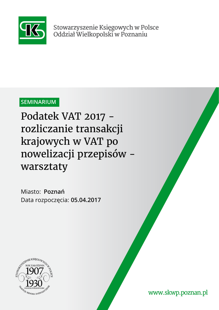 Podatek VAT 2017 - rozliczanie transakcji krajowych w VAT po