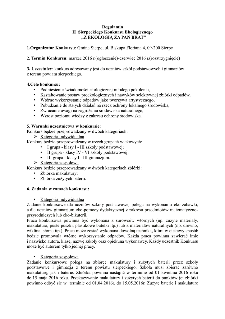 Regulamin II Sierpeckiego Konkursu Ekologicznego