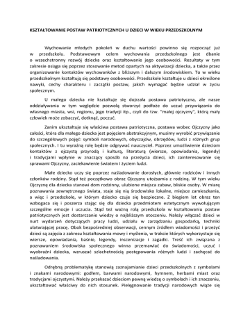 Kształtowanie postaw patriotycznych u dzieci w wieku przedszkolnym