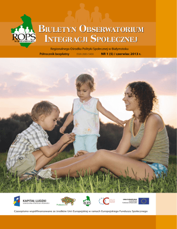 BIULETYNN OBSERWATORIUM INTEGRACJI S32û(&=1(Regionalnego OśrodkaPolityki PolitykiSpołecznej SpołecznejwwBiałymstoku Białymstoku Regionalnego Ośrodka ISSN 2083-540X NR11(3) (5)/ /czerwiec czerwiec 2013 Półrocznik bezpłatny NR 2012 r. r. Czasopismo współfinansowane ze środków Unii Europejskiej w ramach Europejskiego Funduszu Społecznego Wydawca Regionalny Ośrodek Polityki Społecznej w Białymstoku ul. Kombatantów 7, 15-110 Białystok tel. 85 744 72 72, fax: 85 744 71 37 e-mail: [email protected] www.rops-bialystok.pl Redaktor naczelny Elżbieta Rajewska-Nikonowicz © Copyright by Regionalny Ośrodek Polityki Społecznej w Białymstoku ISSN 2083-540X Nakład: 300 egz. Skład i druk 15-691 Białystok ul. Kleeberga 14B tel. 85 868 40 60 e-mail: [email protected] Białystok 2013 Drodzy czytelnicy! Efektywna i skuteczna realizacja zadań instytucji pomocy społecznej oraz sprawne ich funkcjonowanie wymaga dostępu do aktualnych informacji, które pozwalają skutecznie wypełniać zadania wynikające z przepisów prawa. Z tego względu Obserwatorium Integracji Społecznej funkcjonujące przy Regionalnym Ośrodku Polityki Społecznej w Białymstoku realizuje prace badawcze pozwalające na jak najlepsze poznanie zapotrzebowania na badania i informacje z zakresu polityki społecznej. W jednym z artykułów bieżącego wydania znajdą Państwo fragmentaryczne wyniki badania diagnozującego potrzeby informacyjne z obszaru polityki społecznej w województwie podlaskim. Godna uwagi jest również prezentacja wyników dokonanej analizy potrzeb szkoleniowych. Zaprezentowana tematyka szkoleniowa umożliwiła rozpoznanie potrzeb pracowników jednostek pomocy społecznej, co umożliwiło zaplanowanie działań ukierunkowanych na podniesienie poziomu kompetencji osób zatrudnionych w placówkach pomocy społecznej. W niniejszym numerze Biuletynu mogą Państwo również przeczytać o konsultacjach z zakresu stosowania narzędzia Oceny Zasobów Pomocy Społecznej przeprowadzonych wśród jednostek pomocy społecznej z terenu województwa podlaskiego oraz zapoznać się z podstawowymi zasadami oraz procedurami towarzyszącymi przysposabianiu dzieci w Ośrodku Adopcyjnym w Białymstoku. Wyrażam przekonanie, że zainteresuje Państwa także artykuł dotyczący prac społecznie użytecznych w województwie podlaskim opracowany na podstawie wyników badania Podlaskiego Obserwatorium Polityki Społecznej Wojewódzkiego Urzędu Pracy w Białymstoku. Osoby zainteresowane tematem ekonomii społecznej znajdą również coś dla siebie. Jedno z zagadnień niniejszej publikacji prezentuje wybrane zasoby podmiotów ekonomii społecznej na terenie naszego województwa, umożliwiając tym samym zapoznanie się z funkcjonującymi oraz nowopowstającymi podmiotami trzeciego sektora. W związku z powyższym zachęcam Państwa do lektury Biuletynu, życząc wielu refleksji i inspiracji w niesieniu pomocy najbardziej potrzebującym. Dyrektor Regionalnego Ośrodka Polityki Społecznej w Białymstoku Elżbieta Rajewska-Nikonowicz Spis treści Słowo wstępu . . . . . . . . . . . . . . . . . . . . . . . . . . . . . . . . . . . . . . . . . . . . . . . . . . . . . . . . . . . . . . . 2 Wspieranie rodziny i system pieczy zastępczej w województwie podlaskim . . . . . . . . . . . . . . . . . . . . . . . . . 3 Działalność Ośrodka Adopcyjnego funkcjonującego przy Regionalnym Ośrodku Polityki Społecznej w Białymstoku . . . . . . . . . . . . . . . . . . . . . . . . . . . . . . . . . 7 Ocena zasobów pomocy społecznej – konsultacje z zakresu stosowania narzędzia . . . . . . . . . . . . . . . . . . . . 9 Analiza programu prac społecznie użytecznych w województwie podlaskim . . . . . . . . . . . . . . . . . . . . . . . . 10 Potrzeby informacyjne z obszaru polityki społecznej na terenie województwa podlaskiego . . . . . . . . . . . . . . 13 Analiza potrzeb szkoleniowych zgłoszonych przez jednostki pomocy społecznej w województwie podlaskim na rok 2013 . . . . . . . . . . . . . . . . . . . . . . . . . . . . . . . . . . . . . . . . . . . . . . . 19 Diagnoza stanu ekonomii społecznej na terenie województwa podlaskiego . . . . . . . . . . . . . . . . . . . . . . . . 26 PROJEKT „KOORDYNACJA NA RZECZ AKTYWNEJ INTEGRACJI” 2 Słowo wstępu Już po raz kolejny mamy przyjemność zaprosić Państwa do lektury Biuletynu Obserwatorium Integracji Społecznej. Nasz Zespół również i tym razem przygotował wiele ciekawych i cennych informacji z zakresu problemów istotnych dla województwa podlaskiego. Z pewnością warto zapoznać się z zasadami oraz procedurami towarzyszącymi przysposabianiu dzieci w Ośrodku Adopcyjnym w Białymstoku. W bieżącym numerze znajdziecie też Państwo informacje z przeprowadzonych konsultacji znowelizowanego formularza Oceny Zasobów Pomocy Społecznej przeprowadzonych wśród jednostek pomocy społecznej naszego regionu. Uwadze polecamy również artykuły prezentujące wyniki badań diagnozujących potrzeby informacyjne oraz potrzeby szkoleniowe z obszaru polityki społecznej w województwie podlaskim. Rozpoznanie ich umożliwiło zidentyfikowanie luk kompetencyjnych w określonych zakresach oraz wskazało kierunki rozwoju wiedzy i umiejętności pracowników ośrodków pomocy społecznej, powiatowych centrów pomocy rodzinie, domów pomocy społecznej oraz placówek opiekuńczo-wychowawczych. Kolejny artykuł opisuje wybrane zasoby podmiotów ekonomii społecznej na terenie województwa podlaskiego. Dają one możliwość zapoznania się z otaczają- BIULETYN OBSERWATORIUM INTEGRACJI SPOŁECZNEJ cymi nas instytucjami zarówno z obszaru gospodarczego jak i społecznego, działającymi we wszystkich sektorach. Gościnnie na łamach Biuletynu wyniki swoich badań zaprezentował Zespół Podlaskiego Obserwatorium Polityki Społecznej Wojewódzkiego Urzędu Pracy w Białymstoku w ramach artykułu dotyczącego prac społecznie użytecznych w województwie podlaskim. W pierwszej