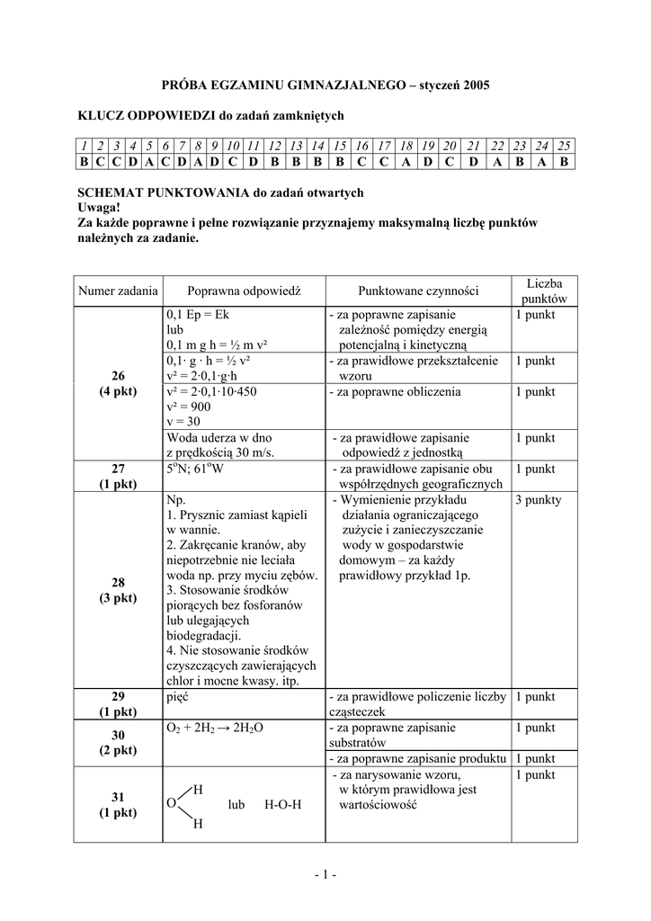 - 1 - PRÓBA EGZAMINU GIMNAZJALNEGO – styczeń 2005 KLUCZ