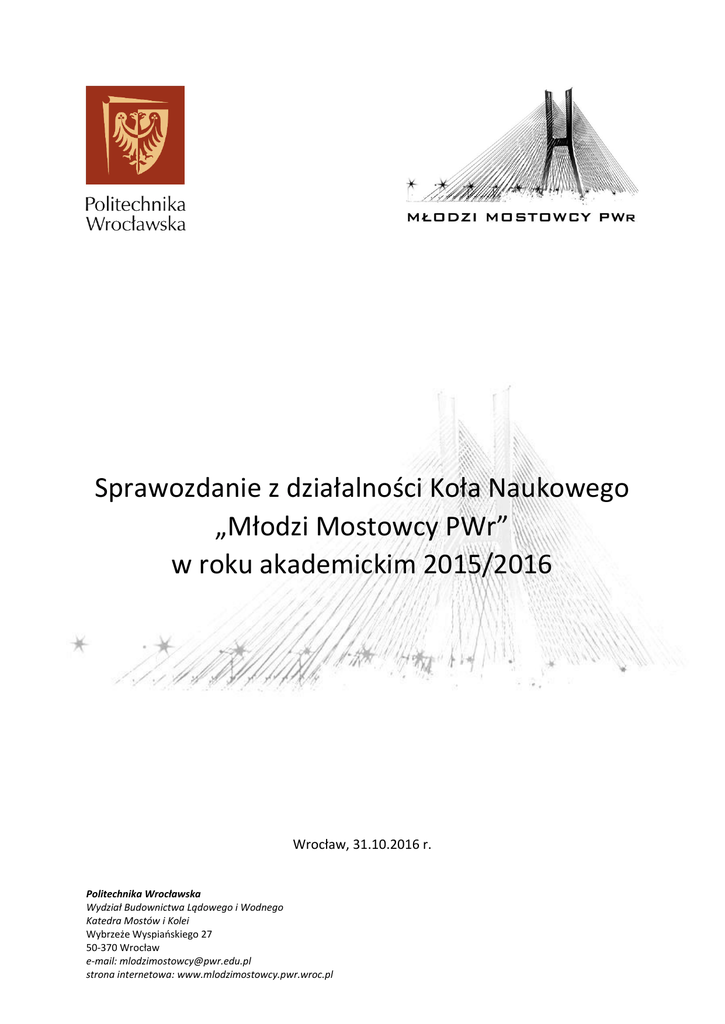 Sprawozdanie roczne 2015/2016 - Koło naukowe Młodzi Mostowcy