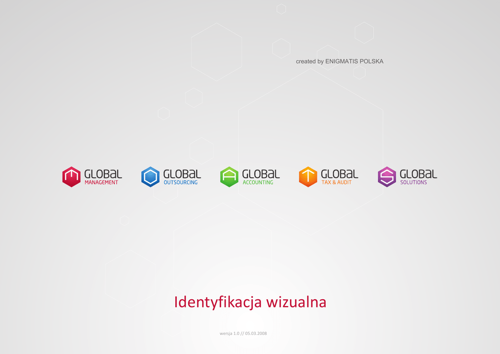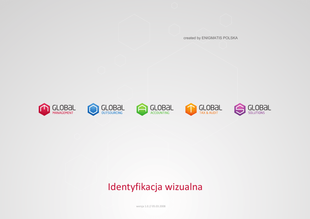 created by ENIGMATIS POLSKA Identyfikacja wizualna wersja 1.0 // 05.03.2008 GLOBAL | Corporate Identity Informacje podstawowe created by ENIGMATIS POLSKA Logo jest podstawowym i jedynym obowi¹zuj¹cym symbolem graficznym spó³ek z grupy Global. Logo nie powinno byæ poddawane ¿adnym zmianom naruszaj¹cym jego pierwotny kszta³t oraz zalecan¹ kolorystykê. Jedyne dopuszczalne zmiany kolorystyki oraz kszta³tu s¹ opisane w dalszej czêœci Ksiêgi. Logo powinno byæ dostarczane wszelkim podmiotom (w tym przede wszystkim studiom graficznym, drukarniom oraz producentom materia³ów promocyjnych) tylko i wy³¹cznie w postaci elektronicznej wraz z wersj¹ elektroniczn¹ Ksiêgi w celu unikniêcia u¿ycia znaku niezgodnego z zasadami to¿samoœci wizualnej grupy Global. 02 GLOBAL | Corporate Identity 01 | Spis treœci created by ENIGMATIS POLSKA 02.1 02.2 02.3 02.4 02.5 03 04 04 04.1 04.2 04.3 04.4 04.5 05 05 06 06 07 08 09 10.1 10.2 10.3 10.4 10.5 11 12 Znak firmowy Global Management Znak firmowy Global Outsourcing Znak firmowy Global Accounting Znak firmowy Global Tax&Audit Znak firmowy Global Solutions Informacje dodatkowe Konstrukcja znaków grupy Global K¹ty stosowane do budowy znaku Konstrukcja znaku Global Management Konstrukcja znaku Global Outsourcing Konstrukcja znaku Global Accounting Konstrukcja znaku Global Tax&Audit Konstrukcja znaku Global Solutions Wielkoœæ minimalna znaku Pole ochronne znaku Siatka modu³owa znaku Wersja czarno-bia³a Znak wœród innych marek Niedozwolone formy wystêpowania znaku Liternictwo firmowe Kolory firmowe Global Management Kolory firmowe Global Outsourcing Kolory firmowe Global Accounting Kolory firmowe Global Tax&Audit Kolory firmowe Global Solutions Inne motywy graficzne do wykorzystania Wielkoœæ znaku na poszczególnych formatach 04 05 06 07 08 09 10 10 11 11 12 12 13 14 15 16 17 18 19 20 21 22 23 24 25 26 27 03 GLOBAL | Corporate Identity GLOBAL Management | Wersja podstawowa znaku 02.1 | Znak Global Management created by ENIGMATIS POLSKA Wersja podstawowa znaku Global Management sk³ada siê z god³a (elementu graficznego - stylizowanej litery nazwy spó³ki) oraz logotypu (napisu Global wraz z nazw¹ spó³ki Management pisanego w dwóch rzêdach). Elementy tworz¹ logo Global Management i nie mog¹, poza szczególnymi przypadkami, wystêpowaæ oddzielnie. Poprzez szczególne przypadki rozumie siê brak mo¿liwoœci technicznych do zastosowania podstawowej wersji znaku. GLOBAL Management | Wersja uzupe³niaj¹ca znaku na ciemne t³a Wersja uzupe³niaj¹ca znaku Global Management sk³ada siê z god³a (elementu graficznego - stylizowanej litery nazwy spó³ki) oraz logotypu (napisu Global wraz z nazw¹ spó³ki Management pisanego w dwóch rzêdach) wystêpuj¹cymi na ciemnym tle. Elementy tworz¹ logo Global Management i nie mog¹, poza szczególnymi przypadkami, wystêpowaæ oddzielnie. Poprzez szczególne przypadki rozumie siê brak mo¿liwoœci technicznych do zastosowania podstawowej wersji znaku. 04 GLOBAL | Corporate Identity GLOBAL Solutions | Wersja podstawowa znaku 02.2 | Znak Global Solutions created by ENIGMATIS POLSKA Wersja podstawowa znaku Global Solutions sk³ada siê z god³a (elementu graficznego - stylizowanej litery nazwy spó³ki) oraz logotypu (napisu Global wraz z nazw¹ spó³ki Solutions pisanego w dwóch rzêdach). Elementy tworz¹ logo Global Solutions i nie mog¹, poza szczególnymi przypadkami, wystêpowaæ oddzielnie. Poprzez szczególne przypadki rozumie siê brak mo¿liwoœci technicznych do zastosowania podstawowej wersji znaku. GLOBAL Solutions | Wersja uzupe³niaj¹ca znaku na ciemne t³a Wersja uzupe³niaj¹ca znaku Global Solutions sk³ada siê z god³a (elementu graficznego - stylizowanej litery nazwy spó³ki) oraz logotypu (napisu Global wraz z nazw¹ spó³ki Solutions pisanego w dwóch rzêdach) wystêpuj¹cymi na ciemnym tle. Elementy tworz¹ logo Global Solutions i nie mog¹, poza szczególnymi przypadkami, wystêpowaæ oddzielnie. Poprzez szczególne przypadki rozumie siê brak mo¿liwoœci technicznych do zastosowania podstawowej wersji znaku. 05 GLOBAL | Corporate Identity GLOBAL Accounting | Wersja podstawowa znaku 02.3 | Znak Global Accounting created by ENIGMATIS POLSKA Wersja podstawowa znaku Global Accounting sk³ada siê z god³a (elementu graficznego - stylizowanej litery nazwy spó³ki) oraz logotypu (napisu Global wraz z nazw¹ spó³ki Accounting pisanego w dwóch rzêdach). Elementy tworz¹ logo Global Accounting i nie mog¹, poza szczególnymi przypadkami, wystêpowaæ oddzielnie. Poprzez szczególne przypadki rozumie siê brak mo¿liwoœci technicznych do zastosowania podstawowej wersji znaku. GLOBAL Accounting | Wersja uzupe³niaj¹ca znaku na ciemne t³a Wersja uzupe³niaj¹ca znaku Global Accounting sk³ada siê z god³a (elementu graficznego - stylizowanej litery nazwy spó³ki) oraz logotypu (napisu Global wraz z nazw¹ spó³ki Accounting pisanego w dwóch rzêdach) wystêpuj¹cymi na ciemnym tle. Elementy tworz¹ logo Global Accounting i nie mog¹, poza szczególnymi przypadkami, wystêpowaæ oddzielnie. Poprzez szczególne przypadki rozumie siê brak mo¿liwoœci technicznych do zastosowania podstawowej wersji znaku. 06 GLOBAL | Corporate Identity GLOBAL Tax&Audit | Wersja podstawowa znaku 02.4 | Znak Global Tax&Audit created by ENIGMATIS POLSKA Wersja podstawowa znaku Global Tax&Audit sk³ada siê z god³a (elementu graficznego - stylizowanej litery nazwy spó³ki) oraz logotypu (napisu Global wraz z nazw¹ spó³ki Tax&Audit pisanego w dwóch rzêdach). Elementy tworz¹ logo Global Tax&Audit i nie mog¹, poza szczególnymi przypadkami, wystêpowaæ oddzielnie. Poprzez szczególne przypadki rozumie siê brak mo¿liwoœci technicznych do zastosowania podstawowej wersji znaku. GLOBAL Tax&Audit | Wersja uzupe³niaj¹ca znaku na ciemne t³a Wersja uzupe³niaj¹ca znaku Global Tax&Audit sk³ada siê z god³a (elementu graficznego - stylizowanej litery nazwy spó³ki) oraz