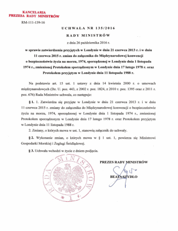 POPRAWKI DO MIĘDZYNARODOWEJ KONWENCJI O BEZPIECZEŃSTWIE ŻYCIA NA