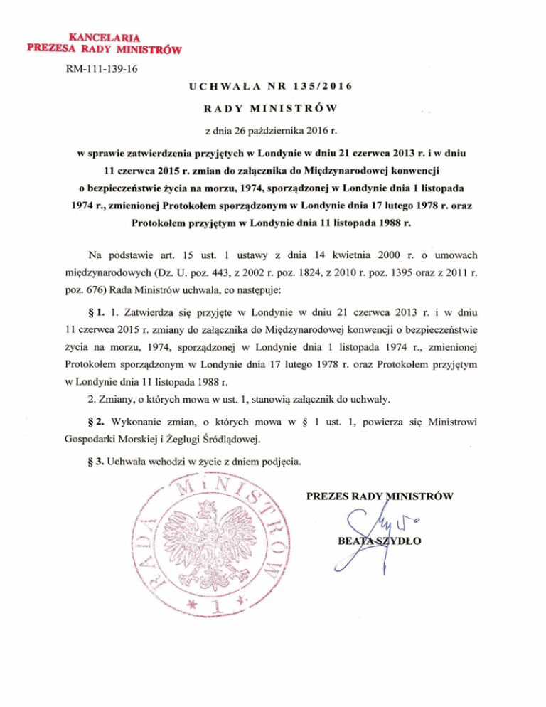 POPRAWKI DO MIĉDZYNARODOWEJ KONWENCJI O BEZPIECZEēSTWIE ĩYCIA