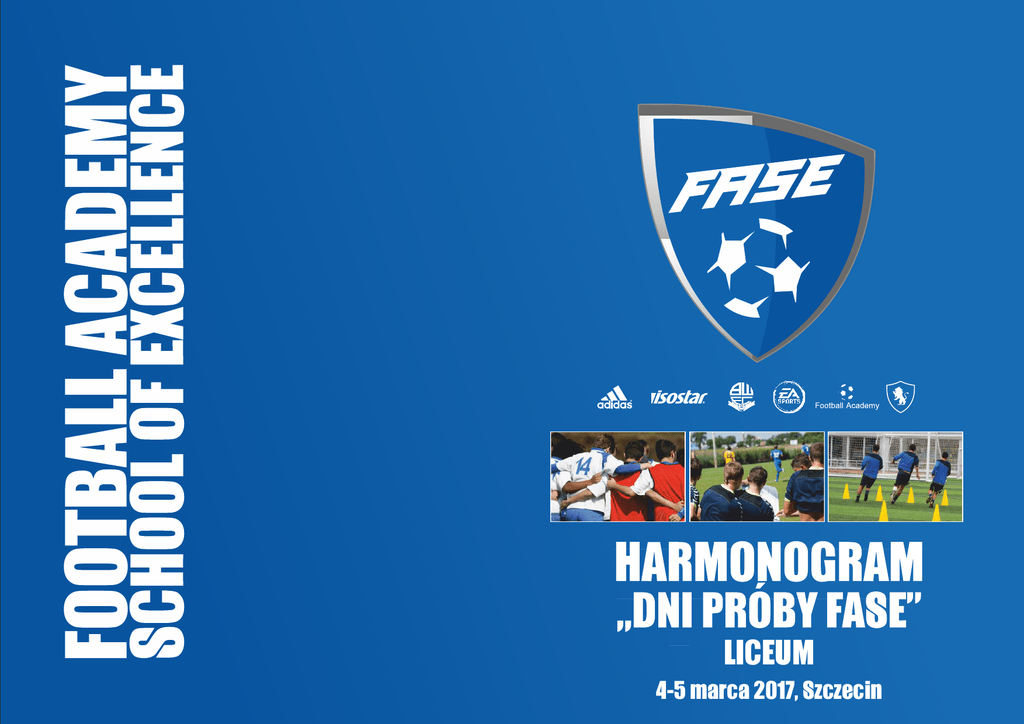 LICEUM HARMONOGRAM 4-5 marca 2017, Szczecin DZIEN PIERWSZY - sobota 4.03.2017 r. DZIEŃPIERWSZY PIERWSZY--Sobota Sobota 4.03.2017 8.03.2014 r.r. DZIEŃ Godzina - Spotkanie z rodzicami oraz zawodnikami w siedzibie Football Academy School ofAcademy ExcellenceSchool przy ul. Klonowica 3w Godzina9:00 9:00 - Spotkanie z rodzicami oraz zawodnikami w siedzibie Football of Excellence Szczecinie. Godzina 9:15 - Prezentacja Football Academy School of Excellence - Radosław Soperczak - Dyrektor Zarządzający FASE Godzina 9:40 - Ankieta psychologiczna dla zawodników Godzina 10:40 - Wyjazd zawodników na zajęcia sprawdzające umiejętności piłkarskie zawodników z pola oraz umiejętności bramkarskie bramkarzy. Zajęcia odbędą się na stadionie przy ul. Piaskowej 97 w Policach. Godzina 14:30 - Wyjazd zawodników na wspólny obiad. Godzina 16:00 - Wyjazd zawodników do centrum piłkarskiego Football Park znajdującego się przy ul. Klonowica 3 w Szczecinie. W Football Park odbędą się badania szybkości oraz wytrzymałości zawodników. Godzina 19:00 - Wyjazd zawodnikow ́ do Bursy Football Academy School of Excellence przy ul. 3 Maja 11 w Szczecinie (zawodnicy uprawnieni do zakwaterowania) Godzina 20:00 - Kolacja i odprawa w Bursie Football Academy School of Excellence. Zakonć zenie pierwszego dnia próby. Rodziców zawodników zamieszkałych w Szczecinie i okolicach prosimy o odbiór podopiecznych z siedziby Football Academy School of Excellence przy ul. Klonowica 3 w Szczecinie o godzinie 21:00. Rodziców zawodników zamieszkałych w szczecinie i okolicach prosimy o odbiór podopiecznych z siedziby football academy school of excellence przy ul. Klonowica 3 w szczecinie o godzinie 19:40. Nasi partnerzy: DZIEN DRUGI - niedziela 5.03.2017 r. DZIEŃ DRUGI - Niedziela 5.03.2017 r. Godzina 9:00 - Wyjazd zawodnikow ́ zakwaterowanych w Bursie FASE na zajęcia sprawdzające umiejętnosć i piłkarskie zawodnikow ́ z pola oraz umiejętnosć i bramkarskie bramkarzy. Zajęcia odbędą się na obiektach Football Park ul. Klonowica 3 w Szczecinie. Zawodnicy ze Szczecina i okolic proszeni są o przybycie na obiekty Football Park o godzinie 9:20 Godzina 15:00 - Wyjazd zawodników na obiad Godzina 16:00 - Zakończenie drugiego dnia próby. Rodziców zawodników prosimy o odbiór podopiecznych z siedziby Restauracji PER SE: Plac Hołdu Pruskiego 9 w Szczecinie. Nasi partnerzy: FASE LICEUM ul. Klonowica 3 71-241 Szczecin tel. 91 448 02 11 fax. 91 448 04 70 [email protected] HARMONOGRAM
