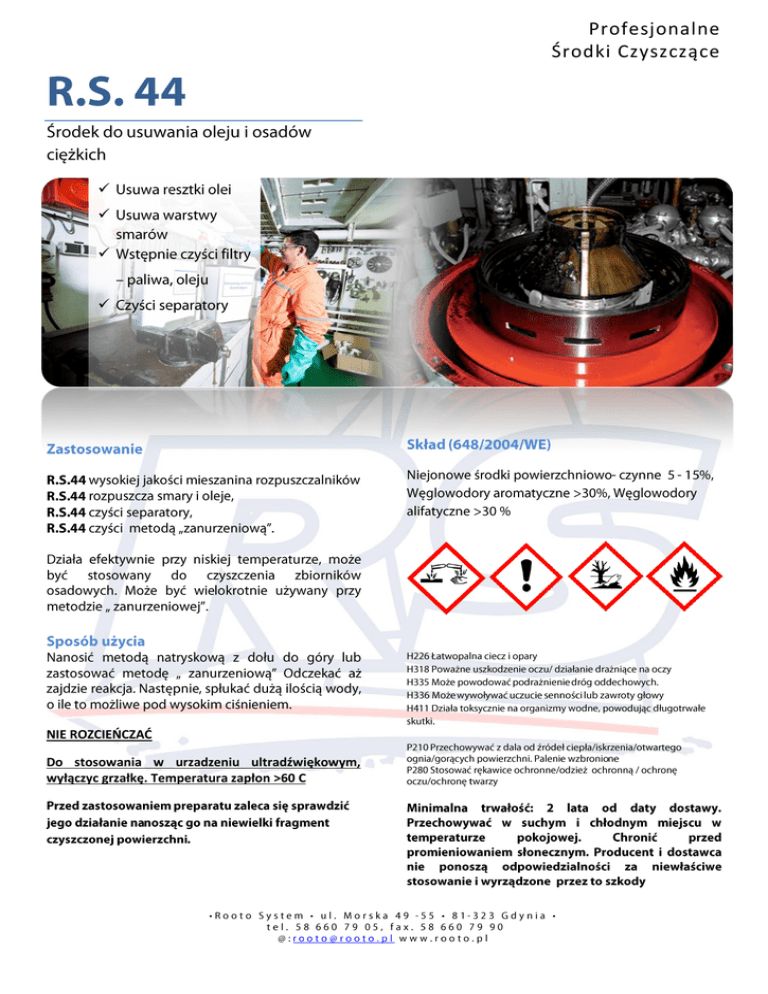 Profesjonalne Środki Czyszczące NIE ROZCIEŃCZAĆ Do stosowania w urzadzeniu ultradźwiękowym, wyłączyc grzałkę. Temperatura zapłon >60 C