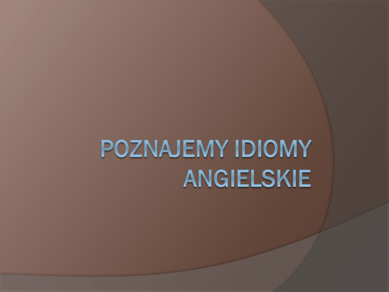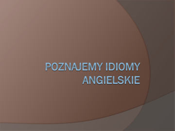 Co to jest idiom? Idiom to wyrażenie tworzące związek frazeologiczny, czasem utartą metaforę, charakterystyczną dla danego języka, którą rzadko można dosłownie przetłumaczyć na inny język. Przykłady idiomów: it rain cats and dogs - leje jak z cebra Przykład zdania: This morning it was raining cats and dogs. Tego ranka lało jak z cebra. curiosity killed the cat – ciekawość to pierwszy stopień do piekła Przykład zdania: Don’t ask her any questions about her marriage. Remember, curiosity killed the cat. Nie zadawaj jej jakichkolwiek pytań na temat jej małżeństwa. Pamiętaj, ciekawość to pierwszy stopień do piekła. change a fly into an elephant – robić z igły widły Przykład zdania: Don't change a fly into an elephant. Nie rób z igły wideł. the other side of the coin – druga strona medalu Przykład zdania. Fame has the other side of the coin as well. Sława również ma druga stronę medalu. bet one's bottom dollar - założyć się o ostatni grosz Przykład zdania : I bet my bottom dollar he won't finish this by noon. No way! Założę się o ostatni grosz, że on nie skończy tego do południa. Nie ma szans! Achilles' heel - pięta Achillesa, słaby punkt Przykład zdania : You see, maths has always been my Achilles' heel . Widzisz, matematyka zawsze była moją piętą achillesową . between a rock and a hard place - między młotem a kowadłem Przykład zdania : I feel just like between a rock and a hard place. Czuję się jak między młotem i kowadłem. cry for the moon - chcieć gwiazki z nieba Przykład zdania: Oh, come on! Be realistic! It's like crying for the moon! We cannot afford it. Och, daj spokój! Bądź realistą! To jak chcieć gwiazdki z nieba! Nie możemy sobie na to pozwolić. trial and error - metoda prób i błędów Przykład zdania: I found the answer by trial and error. Znalazłem odpowiedź metodą prób i błędów. come hell or high water – choćby się paliło i waliło Przykład zdania: I'll get you to the airport by 12 o'clock, come hell or high water. Zawiozę cię o 12 na lotnisko choćby się paliło i waliło. beat somebody black and blue - zbić kogoś na kwaśne jabłko Przykład zdania: Tommy always threatens his little sister that he will beat her black and blue if she tells their parents about his marks at school. Tomy często groził młodszej siostrze, że zbije ją na kwaśne jabłko, jeśli powie rodzicom o jego ocenach w szkole. Skąd się biorą idiomy? Ponieważ rodowici użytkownicy języka angielskiego, aby brzmieć zabawnie lubią bawić się słowami, używać podwójnego znaczenia danego potocznego zwrotu, daje to zaczątek do powstawania idiomów. W ten sposób dany zwrot istniejąc początkowo jedynie na płaszczyźnie dosłownej, zostaje używany także w przenośni. Również określona sytuacja historyczna i kulturowa może przyczynić się do powstawania idiomów, jak miało to często miejsce w historii. Powody dla których warto stosować idiomy: aby wyróżniać się z „szerokiego tłumu rozmówców” i podkreślić swoją indywidualność żeby rozładować napięcie między rozmówcami, przez to, że idiomy brzmią zabawnie aby bawić się słowami żeby nadać wypowiedzi żywy i bardziej obrazowy charakter Trudności w stosowaniu idiomów. Angielskie idiomy sprawiają Polakom bardzo wiele trudności. Wynika to z tego, że w języku angielskim idiomy często zawierają odniesienia kulturowe kompletnie różne, niż w polskim. Angielskie idiomy często także odwołują się do nieznanych Polakom wydarzeń historycznych, np. zwrot „as dead as a dodo” (dosłownie „martwy jak dodo”) odwołuje się do wymarcia ptaka dodo na Mauritiusie w XVII wieku, o czym w polskich szkołach się raczej nie uczy. Z drugiej strony idiomy takie jak „wyszedł jak Zabłocki na mydle” z natury rzeczy nie sprawdzą się po przełożeniu dosłownym jako idiomy angielskie. Katarzyna Gontek Katarzyna Bajor Dawid Śliwiński Damian Salata Przemek Łuczyński