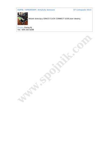 KUPIĘ / SPRZEDAM | Artykuły domowe 07 Listopada 2015 Wózek dziecięcy GRACO CLICK CONNECT $100,stan idealny, w w w .s po jn ik .c o m Magda, Ewing Nj Tel.: 609 283 8288