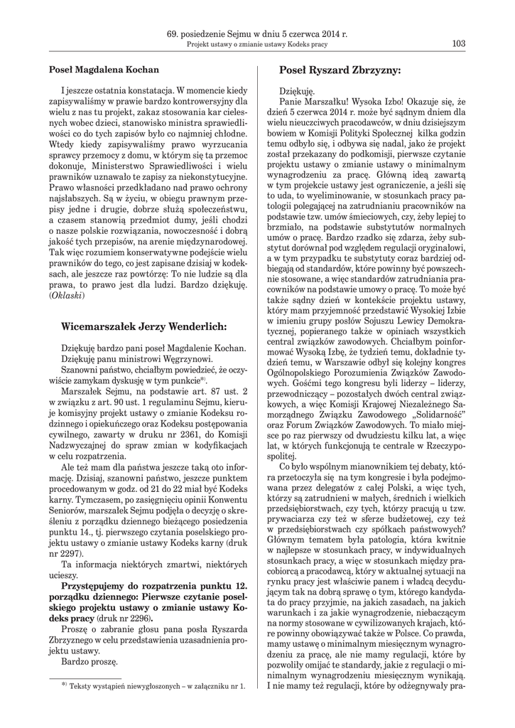 fragment protokołu 69. Posiedzenia Sejmu RP PDF