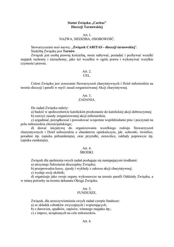 Statut Związku - Caritas Diecezji Tarnowskiej