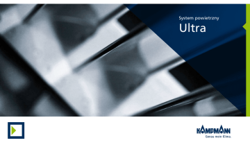System powietrzny Ultra Bezkonkurencyjne zalety Zalety Ultra Przykładowe układy Warianty regulacji Dane techniczne Wymiary Korzyści dla klienta! Ultra: najlepiej sprzedający się system do dużych pomieszczeń. Gwarancja sukcesu Dlaczego warto zdecydować się na system Ultra? Ponieważ jego starannie wykonana obudowa cechuje się ponadczasowym kształtem. Różnice między wariantami na powietrze obiegowe i mieszane są niezauważalne. Wiele osób stawia na to urządzenie, ponieważ odznacza się ono naprawdę dużą mocą. Duże plany Do dużych pomieszczeń o dużej powierzchni potrzebujesz tego aparatu grzewczo-wentylacyjnego. Nawet z wysokości czterech metrów zapewnia on komfortowy mikroklimat. Urządzenie jest przeznaczone do montażu w litym suficie, natomiast akcesoria do powietrza mieszanego można zabudować w suficie podwieszanym. Precyzyjny kierunek przepływu powietrza Optymalnie zwymiarowany, pierścieniowy wymiennik ciepła gwarantuje wysoką moc grzewczą i chłodniczą. Kierunek, w którym uzdatnione powietrze ma płynąć, można wybrać, ustawiając szerokie lamele. Zawsze pasuje Asortyment zapewnia Ci swobodny wybór: wysokość zaledwie 330 mm, trzy różne rozmiary, bogate akcesoria (...) itp. Jeśli aparat grzewczo-wentylacyjny Ultra ma pracować w trybie niskotemperaturowym – to także da się zrobić! Niskie koszty eksploatacji Zdecyduj się na długofalowo niskie koszty eksploatacji. Pomogą w tym cichobieżny wentylator sierpowy, różne warianty regulacyjne oraz opcjonalne technologie EC i KaControl. Szybka dostawa Krótkie terminy dostaw gwarantują elastyczność i możliwość szybkiej realizacji zleceń: wszystkie urządzenia standardowe dostarczamy prosto z magazynu. Możesz na nas polegać. W końcu Twoi klienci polegają na Tobie. !Osłona wlotu powietrza w wyposażeniu ! standardowym "Obudowa z tworzywa sztucznego, RAL 9016 #Wanna kondensatu $Pokrywa spodnia %Cichobieżny wentylator osiowo-sierpowy &Wymiennik ciepła Cu/Al " % % & # & $ Zalety Ultra Wylot powietrza Powietrze wydostaje się przez sześć pól wydmuchu i jest kierowane przez szerokie lamele (45 mm). Lamele kierowania powietrza można ustalić w sześciu różnych położeniach. Warianty Ogrzewanie Ogrzewanie lub chłodzenie Ultra z elementami do powietrza mieszanego do montażu w suficie podwieszanym, zasysanie powietrza zewnętrznego przez dach ! Ultra z kwadratową ramą przyłączeniową " Osłona wlotu powietrza # Kolano redukcyjne 90° $ Elastyczny łącznik % Zespół mieszający pionowy & Podstawa dachowa do dachów / płaskich z dachowym kanałem przepustowym / Czerpnia dachowa * Zasłona przykrywająca do dolnej strony dachu Ultra z elementami do trybu powietrza obiegowego do montażu w suficie podwieszanym ! Ultra " Wsuwana wkładka filtracyjna z filtrem # Zoptymalizowany akustycznie sufi rastrowy $ Kolano redukcyjne 90° % Kolano do powietrza zasysanego 90° z kratą wlotu powietrza & Elastyczny łącznik Przykłady montażu powietrze obiegowe/ powietrze mieszane & * $ # $ $ & " % % " # ! ! Przykłady montażu powietrze obiegowe/ powietrze mieszane % $ # ! " ! Ultra z elementami do powietrza mieszanego, zasysanie powietrza zewnętrznego przez ścianę " Ultra # Ultra z elementami do powietrza obiegowego $ Zoptymalizowany akustycznie sufit rastrowy % Ultra z elementami do powietrza mieszanego, zasysanie powietrza zewnętrznego przez dach System automatyki pomieszczenia KaControl Technologia KaControl zintegrowana fabrycznie do tworzenia systemów połączonych w sieć na bazie KaControl-Basis Interfejsy do systemów automatyzacji budynków BACnet* lub Modbus jako opcjonalny podzespół wtykany Wejście analogowe 0-10 V do sterowania wentylatorem i zaworem poprzez jeden punkt danych Atrakcyjny panel pokojowy z intuicyjną obsługą Zintegrowany program czasowy * Zintegrowany serwer sieciowy Dane techniczne Seria 73 84 85 96 96 97 Ogrzewanie i wentylacja 2-stopniowy silnik trójfazowy 400 V Typoszereg 73_ _36 84_ _36 85_ _36 96_ _36 96_ _38 973066 1-stopniowy silnik jednofazowy 230 V Typoszereg 73_ _16 84_ _16 85_ _16 96_ _16 - 973060 [m³/h] 880 – 1180 1350 – 1650 1990 – 2860 3270 – 5130 2520 – 3670 3060 – 4090 [dB(A)] 38 – 43 44 – 50 45 – 52 50 – 60 44 – 51 48 – 55 [kW] 7,4 – 11,5 10,9 – 15,8 15,4 – 25,1 23,1 – 40,0 19,5 – 32,0 29,0 – 35,4 Maks. wysokość montażu [m] 2,3 – 2,4 2,5 – 2,8 3,0 – 3,4 3,4 – 3,9 3,2 – 3,7 3,3 – 3,7 Zasięg wyrzutu powietrza [m] 3,2 – 3,8 3,7 – 4,4 4,6 – 5,6 5,4 – 7,0 5,0 – 6,2 5,1 – 6,1 2-stopniowy silnik trójfazowy 400 V Typoszereg - 843136 853136 963136 963138 973166 1-stopniowy silnik jednofazowy 230 V Typoszereg - 843116 853116 963116 - 973160 [kW] - 6,6 – 7,3 9,1 – 11,1 13,6 – 17,0 11,6 – 14,2 13,1 – 15,4 Przepływ powietrza Poziom ciśnienia akustycznego 1) Moc cieplna 2) Ogrzewanie lub chłodzenie Moc chłodnicza 3) Rozmiar przyłącza 1) 3) [cale] mierzony w odległości 3 m 2) moce cieplne przy temperaturze wody grzewczej 75/65 °C, tL1 = 20 °C moce chłodnicze przy temperaturze wody lodowej 6/12 °C, tL1 = 28 °C i 50 % wzgl. wilgotności powietrza 1 Wymiary Ultra Seria A B C D 73 750 840 729 739 84 / 85 900 1004 904 912 96 / 97 1050 1177 1077 1085 Wymiary w mm Skorzystanie z uslug firmy Kampmann zapewni Ci szereg korzysci: Korzyści dla klienta! doradztwo na miejscu różnorodna paleta wzorców wsparcie w projektowaniu wsparcie przy doborze urządzeń ustalenie wszystkich szczegółów indywidualny instruktaż obsługa posprzedażna Jesteśmy do Twojej dyspozycji: Kampmann.pl/kontakt Kampmann.pl Kampmann GmbH Friedrich-Ebert-Str. 128 – 130 49811 Lingen (Ems) Niemcy T + 49 591 7108 -0 F + 49 591 7108 -300 E [email protected] W Kampmann.de KAMPMANN Polska Sp. z o.o. ul. Lotnicza 21f 99-100 Łęczyca Polska T +48 24 7219185 F +48 24 7219191 E [email protected] W Kampmann.pl