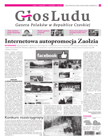 wtorek | 7 lutego 2017 | nr 16 (LXXII) | cena: 8 kč Zbliża się Dzień Języka Ojczystego | s. 2 Wydali zaginione protokoły | s. 3 Pismo ukazuje się we wtorki, czwartki i soboty. www.glosludu.cz Rzeka, która płynie przez wszystkie polskie serca | s. 4 Internetowa autopromocja Zaolzia WYDARZENIE: Organizacje polskie z Zaolzia coraz lepiej radzą sobie w autopromocji w sieci internetowej. Wśród nich prym wiodą Kongres Polaków w RC i Polski Związek Kulturalno-Oświatowy. Wypełniają w ten sposób jeden z ważniejszych postulatów „Wizji 2035”, mówiący o tworzeniu pozytywnego PR o Polakach na Zaolziu. Jednym z rodzajów współczesnej promocji organizacji czy instytucji jest popularyzowanie informacji na jej temat w sieci internetowej. Autopromocja danej organizacji może przebiegać na dedykowanej jej stronie internetowej lub na niezwykle popularnych tzw. mediach społecznościowych, typu Facebook. com, Instagram.com lub Twitter. com. Współcześnie korzystanie z mediów społecznościowych stało się do tego stopnia nieodzowne, że wykluło się powtarzane pół żartem, pół serio powiedzenie: „Jeśli nie ma cię na Facebooku, to znaczy, że nie żyjesz”. Twórca Facebooka, miliarder Mark Zuckerberg, też ma konto na Facebooku i obserwuje go codziennie ponad 85 mln osób. Potrzebę autopromocji za pomocą nowych technologii rozumie Kongres Polaków w RC, który posiada nie tylko przejrzystą i funkcjonalną stronę internetową, ale także aktywne konto na Facebooku. Na swoim profilu facebookowym Kongres Polaków promuje ważne wydarzenia dla Zaolzia, a także liczne kluczowe dla rozwoju polskości inicjatywy, jak np. niedawno uruchomiony Fundusz Rozwoju Zaolzia. W większości przypadków autopromocja na Facebooku Kongresu Polaków skorelowana jest z aktywnością wydawanej przez niego gazety „Głos Ludu”, która jest najpopularniejszą polską gazetą w RC na Facebooku. Konto facebookowe „Głosu Ludu” obserwowane jest przez ponad 1750 użytkowników, którzy wzajemnie udostępniają między sobą artykuły, czym podwajają ich oglądalność. Zarówno Kongres Polaków, jak i „Głos Fot. ARC ZAOLZIE A NOWE TECHNOLOGIE Ludu” dokładają wszelkich starań, by unowocześnić swój wizerunek za pomocą mediów społecznościowych popularnych szczególnie wśród młodszego pokolenia. Należy stwierdzić, że efekty są bardzo dobre, gdyż wśród internetowych czytelników „Głosu Ludu” dominują osoby młode. Popularyzowanie na Facebooku artykułów, fotoreportaży i ciekawych stałych rubryk „Głosu Ludu” było więc strzałem w dziesiątkę. Analogiczne zaangażowanie w zróżnicowaną autopromocję w sie- Konkurs rozstrzygnięty POGODA wtorek środa dzień: -4 do -3 0C dzień: -6 do -4 0C noc: -6 do -4 0C noc: -7 do -6 0C wiatr: 3-4 m/s wiatr: 2-3 m/s Fot. ARC W sobotę 28 stycznia ogłosiliśmy konkurs, którego stawką było pięć podwójnych całodniowych karnetów do ośrodka narciarskiego Poniwiec Mała Czantoria w Ustroniu (na zdjęciu). O tym, że wśród naszych czytelników nie brakuje amatorów białego szaleństwa, a nagrody w postaci darmowych karnetów uważane są za nader atrakcyjne, świadczył wasz udział. Przez cały tydzień trwania zabawy na podany w konkursie adres schodziły wasze odpowiedzi. Wszystkie poprawne – Paulina Ligocka. O zwycięzcach zdecydowało więc losowanie, w którym szczęście uśmiechnęło się do: Mariana Klimasa, Ireny Włosokowej, Ireny Drong, Bohuslava Heczki i Ewy Mrowiec. Zwycięzcom gratulujemy i prosimy o skontaktowanie się w sprawie odebrania nagrody z Beatą Schönwald, nr tel. 775 700 896, e-mail: [email protected]. (sch) ci internetowej wykazuje Polski Związek Kulturalno-Oświatowy. ZG PZKO posiada funkcjonalną i wygodną stronę internetową wypełnioną wartościowymi informacjami. Mnogość przedsięwzięć, jakich podejmuje się PZKO, jest tu solidnie i rzetelnie wyeksponowana. Swoje podstrony posiadają liczne zespoły, kapele, sekcje naukowe, zespoły teatralne itd. działające pod skrzydłami PZKO. Każda z tych inicjatyw została wyczerpująco opisana na stronie internetowej. Dodatkowo w witrynie PZKO znajdziemy również fotogalerię z imprez, a także wyczerpujący rys historyczny tej organizacji. Co warte podkreślenia, strona internetowa ZG PZKO jest platformą, poprzez którą można zagłębić się w świat kilkudziesięciu Miejscowych Kół PZKO, które również kładą nacisk na nowoczesne, a więc internetowe popularyzowanie wiedzy na temat swojej aktywności. Jeśli chodzi o internet, reklama Miejscowych Kół głównie ma miejsce na portalu Facebook. Przykładem merytorycznego i ciekawego postu na Facebooku jest wzmianka MK PZKO w Łomnej Dolnej z 25 stycznia br. na temat Jana Korzennego sen. w 120. rocznicę jego urodzin. Jest to zarazem dowód na to, że Polacy zamieszkujący Republikę Czeską niezmiennie zachowują pamięć o wybitnych działaczach zasłużonych dla rozwoju Zaolzia. Zaangażowanie Miejscowych Kół PZKO w autopromocję w sieci internetowej powoduje, że jest to żywa struktura, która cieszy się niezmiennym poważaniem. Warto wyakcentować w tym kontekście ciekawą inicjatywę wydawanego przez PZKO miesięcznika „Zwrot”, który przygotował specjalną aplikację na smartfona „Zaolzie w twoim telefonie”, dzięki której wartościowe teksty redakcji „Zwrotu” można czytać bezpośrednio ze swojego telefonu lub tabletu. MAŁGORZATA BRYL Ciąg dalszy na str. 4 WIADOMOŚCI 2 TRZYNIEC (dc) – Biblioteka Miejska poświęci w tym roku specjalną uwagę ludziom niewidomym i słabowidzącym. Z myślą o nich został przygotowany osobny projekt. W placówce będą wyświetlane filmy specjalnie dostosowane do potrzeb ludzi niewidzących (z dodatkowym opisem dźwiękowym), odbędzie się spotkanie z niewidomym alpinistą Janem Říhą czy też Dni Sztuki Niewidomych. * * * WŁAMANIA DO SAMOCHODÓW ORŁOWA (dc) – W weekend doszło do kil