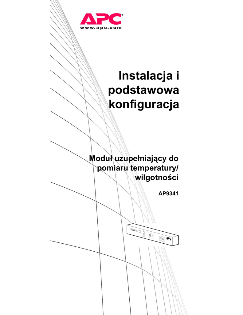 Instalacja i podstawowa konfiguracja Moduł uzupełniający do pomiaru temperatury/ wilgotności AP9341 This manual is available in English on the APC Web site (www.apc.com). Dieses Handbuch ist in Deutsch auf der APC Webseite (www.apc.com) verfügbar. Ce manuel est disponible en français sur le site internet d’APC (www.apc.com). Questo manuale è disponibile in italiano sul sito web di APC (www.apc.com). 本マニュアル日本語版は APC ウェブサイト (www.apc.com) からダウンロードできます。 Instrukcja obslugi w jezyku polskim jest dostepna na stronie internetowej APC (www.apc.com). Данное руководство на русском языке доступно на сайте APC (www.apc.com). Este manual está disponible en español en la página web de APC (www.apc.com). Este manual está disponível em português no site da APC (www.apc.com). Bu kullanim klavuzunun Türkçesi APC web sayfasinda (www.apc.com) mevcuttur. 在 APC 公司的网站上 (www.apc.com) 有本手册的 中文版。 Spis treści Informacje wstępne . . . . . . . . . . . . . . . . . . . . . .1 Informacje ogólne . . . . . . . . . . . . . . . . . . . . . 1 Produkt i jego wyposażenie . . . . . . . . . . . . . 1 Opcjonalne wyposażenie dodatkowe . . . . . . 1 Dodatkowa dokumentacja . . . . . . . . . . . . . . . 1 Kontrola przy odbiorze . . . . . . . . . . . . . . . . . 1 Recykling . . . . . . . . . . . . . . . . . . . . . . . . . . . . 2 Elementy panelu przedniego i tylnego. . . . . . .3 Panel przedni . . . . . . . . . . . . . . . . . . . . . . . . . 3 Panel tylny . . . . . . . . . . . . . . . . . . . . . . . . . . . 3 Montaż — Moduł TH . . . . . . . . . . . . . . . . . . . . . .4 Montaż bez użycia narzędzi za pomocą kołków . . . . . . . . . . . . . . . . . . . . . . . . . . . . . . . 4 Montaż w szafie lub obudowie za pomocą klamer . . . . . . . . . . . . . . . . . . . . . . . . . . . . . . . 4 Montaż — akcesoria. . . . . . . . . . . . . . . . . . . . . .6 Czujniki . . . . . . . . . . . . . . . . . . . . . . . . . . . . . . 6 Sygnalizator alarmowy . . . . . . . . . . . . . . . . . 9 Wejścia sygnalizacyjne (opcjonalne) . . . . . . 9 Montaż modułów TH . . . . . . . . . . . . . . . . . . 10 Nadawanie niepowtarzalnych numerów identyfikacyjnych . . . . . . . . . . . . . . . . . . . . . 11 Dodatkowe moduły TH . . . . . . . . . . . . . . . . 12 Dostęp do modułu TH . . . . . . . . . . . . . . . . . . .13 Aktualizacja modułu TH. . . . . . . . . . . . . . . . . .13 Dane techniczne. . . . . . . . . . . . . . . . . . . . . . . .14 Moduł TH . . . . . . . . . . . . . . . . . . . . . . . . . . . . 14 Czujniki . . . . . . . . . . . . . . . . . . . . . . . . . . . . . 15 Gwarancja . . . . . . . . . . . . . . . . . . . . . . . . . . . . .16 Ograniczona gwarancja . . . . . . . . . . . . . . . . 16 Ograniczenia gwarancji . . . . . . . . . . . . . . . . 16 Uzyskiwanie pomocy technicznej . . . . . . . 16 Informacje dotyczące systemów podtrzymywania życia . . . . . . . . . . . . . . . . . . .18 Zasady ogólne . . . . . . . . . . . . . . . . . . . . . . . 18 Przykłady urządzeń podtrzymujących życie . . . . . . . . . . . . . . . . . . . . . . . . . . . . . . . 18 Moduł uzupełniający i Informacje wstępne Informacje ogólne Moduł do pomiaru temperatury/wilgotności (Moduł TH) podłączany jest do modułu głównego Menedżera warunków otoczenia, który służy do monitorowania warunków otoczenia i sterowania nimi za pośrednictwem urządzeń peryferyjnych, takich jak czujniki temperatury i wilgotności oraz styki w drzwiach. Produkt i jego wyposażenie Ilość Element 1 Moduł TH (AP9341) 2 Klamry do standardowej szafy 19calowej 4 Śruby z łbem krzyżowym 8-32 × 1/4 2 Kołki do montażu bez użycia narzędzi (wstępnie zamontowane) 1 Czujnik temperatury (AP9335T) 2 Samoprzylepne uchwyty do kabli 1 Samoprzylepny uchwyt czujnika temperatury 1 Śruby z łbem płaskim 1 Kotwy ścienne 5 Opaski kablowe Opcjonalne wyposażenie dodatkowe • Czujnik temperatury (AP9335T) • Czujnik temperatury/wilgotności (AP9335TH) • Zasilacz (AP9505i) • Sygnalizator alarmowy (AP9324) • Komplet czujnika drzwi (AP9513) Dodatkowa dokumentacja Więcej informacji na temat interfejsu zawiera Podręcznik użytkownika (User’s Guide) modułu TH Menedżera warunków otoczenia zamieszczony na dostarczone płycie Utility CD lub w witrynie internetowej firmy APC: www.apc.com. Kontrola przy odbiorze Należy sprawdzić, czy podczas transportu nie doszło do uszkodzenia opakowania lub jego zawartości, i upewnić się, że dostarczone zostały wszystkie części wymienione w tabeli wyposażenia. O wszelkich uszkodzeniach powstałych w trakcie transportu należy niezwłocznie powiadomić przewoźnika. Wykaz brakujących elementów, uszkodzeń lub innych problemów dotyczących produktu należy przedłożyć firmie APC lub sprzedawcy. Moduł do pomiaru temperatury/wilgotności 1 Informacje wstępne Recykling Opakowanie nadaje się do recyklingu. Należy zachować je do późniejszego wykorzystania lub zutylizować w odpowiedni sposób. 2 Moduł do pomiaru temperatury/wilgotności Elementy panelu przedniego i tylnego Panel przedni W celu zamontowania modułu TH w szafie lub obudowie APC w taki sposób, aby nie zajmował on ani jednej wysokości U, należy użyć kołków do montażu bez użycia narzędzi umieszczonych w panelu przednim modułu. T/H Expansion Module Element aem0051a Panel tylny Opis Wejście 24 VDC Umożliwia doprowadzenie dodatkowego zasilania w konfiguracjach z dużym obciążeniem prądowym. Wejścia Umożliwiają podłączenie czterech sygnalizacyjne czujników. Obsługują: • styki bezpotencjałowe; • sygnały cyfrowe 0-5 V; Informacje na temat konfiguracji zawiera Podręcznik użytkownika (User’s Guide) modułu TH Menedżera warunków otoczenia zamieszczony na dołączonej płycie Utility CD i dostępny w witrynie internetowej firmy APC (www.apc.com). Wyjście zasilające