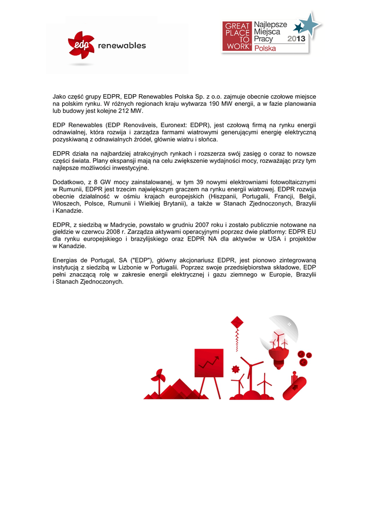 Jako część grupy EDPR, EDP Renewables Polska Sp. z o.o. zajmuje obecnie czołowe miejsce