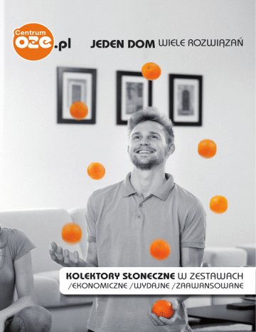 jeden dom wiele rozwiązań kolektory sŁoneczne w zestawach /EKONOMICZNE /wydajne /zaawansowane CentrumOZE.pl to największy w Polsce salon umożliwiający porównanie urządzeń wielu renomowanych producentów z branży odnawialnych źródeł energii. W jednym miejscu zgromadziliśmy różne typu kolektorów słonecznych, pomp ciepła (powietrzne i gruntowe), paneli fotowoltaicznych do produkcji prądu elektrycznego, ekologicznych kotłów na pellet, kondensacyjnych kotłów gazowych, a także systemy wentylacji i rekuperacji do oszczędzania energii, osprzęt instalacyjny oraz zasobniki CWU i CO. koszt podgrzania 1m3 wody: kolektory słoneczne ............................................................................................................................. 3,00 zł* węgiel ................................................................................................................................ 6,20 zł kocioł na drewno lub kominek . ............................................................ 7,60 zł kocioł gazowy .................................................................................... 10,50 zł bojler gazowy ........................................................ 16,00 zł gaz płynny .................................................. 17,00 zł olej opałowy ............................... 21,50 zł prąd elektryczny .............. 23,00 zł Kolektory płaskie idealnie nadają do instalacji CWU. Latem zastępują tradycyjne źródła energii. Duża powierzchnia absorbera w pogodne dni produkuje ogromne ilości ciepła do wykorzystania np. w basenach przydomowych. Ich sztywna konstrukcja umożliwia wygodny montaż pionowy i poziomy na dowolnym dachu, elewacji lub obok budynku. Posiadają hartowaną szybę solarną, odporną na trudne warunki zewnętrzne (grad). Świetnie współpracują z kotłami na węgiel, gaz i olej. Modele najbardziej zaawansowane technologicznie osiągają wysoką sprawność już przy niewielkim nasłonecznieniu. Dlatego z powodzeniem są wy- korzystywane także w nowoczesnych instalacjach niskotemperaturowych, dodatkowo obniżając średnioroczne koszty ogrzewania. Kolektory rurowo-próżniowe lepiej niż płaskie pracują przy niskiej temperaturze powietrza. Jest to możliwe dzięki zastosowaniu w podwójnej rurze doskonałej izolacji w postaci próżni. Ze względu na mniejszą powierzchnię absorbera, aby osiągnąć podobną moc do kolektora płaskiego, potrzebna jest większa liczba rur (dotyczy to zwłaszcza kolektorów rurowych typu heat pipe). Do wspomagania CO w układzie biwalentnym nadają się kolektory próżniowe cieczowe z lustrem parabolicznym. Ilość produkowanej energii przez kolektory słoneczne zależy od nasłonecznienia w poszczególnych miesiącach. Co roku liczba dni słonecznych i pochmurnych może być inna, co wpłynie na efektywność systemu solarnego. Na wydajność poszczególnych kolektorów słonecznych wpływają powierzchnia apertury (czyli części absorbera przechwytującej promieniowanie słoneczne), a także straty ciepła z powodu różnicy temperatur. Jedynie najbardziej zaawansowane urządzenia zapewniają maksymalne wykorzystanie darmowej energii, przy minimalnych stratach. wykres przedstawia efektywność kolektorów słonecznych w ciągu roku kolektory płaskie kolektory próżniowe źródło: www.oszczedzanie.biz Kolektory słoneczne są najłatwiejszym i najtańszym sposobem obniżenia kosztów podgrzewania wody użytkowej. Wykorzystują one darmowe promieniowanie słońca do podgrzewania wody użytkowej (CWU) i ogrzewania domu (CO). Kolektory oferowane są w kompletnych zestawach, na które składają się: sterownik elektroniczny, grupa pompowa, osprzęt solarny oraz zasobnik z dwoma wężownicami. źródło: WATT efektywność *średnioroczny koszt pracy pompy obiegowej I II III IV V VI VII VIII IX X XI XII E K O N O M I CZ N E wydajne zaawansowane Systemy solarne z serii ekonomicznej przeznaczone są do podgrzewania wody użytkowej. Wraz z osprzętem, grupą pompową i zbiornikiem stanowią kompletny zestaw urządzeń gotowych do natychmiastowego montażu i uruchomienia. Zestawy ekonomiczne przeznaczone są dla osób zużywających wodę w niewielkich ilościach lub okresowo (np. w domkach letniskowych). Zestawy solarne z grupy wydajnych dostarczają ekologiczne ciepło do podgrzewania wody (latem) oraz wspomagania CO w okresie przejściowym i zimą. Dzięki kompaktowym rozmiarom zapewniają duże ilości energii, z urządzeń zajmujących stosunkowo niewielką powierzchnię. Zestawy wydajne przeznaczone są do stałego zasilania w ciepło domów jednorodzinnych. Systemy solarne z grupy zaawansowanych stanowią samodzielne źródło energii, które umożliwia całkowite wyłączenie innych urządzeń grzewczych. Zastosowane w nich rozwiązania techniczne zapewniają najwyższą wydajność i żywotność obliczaną na co najmniej 25 lat. Znakomicie współpracują z tradycyjnymi kotłami oraz urządzeniami wykorzystującymi odnawialne źródła energii (np. z pompą ciepła). Firma Caldoris Polska to lider dystrybucji kolektorów słonecznych i systemów solarnych przeznaczonych do podgrzewania wody użytkowej. EKONOMICZNE zestawy solarne marki Caldoris dostępne są w dwóch wersjach: z kolektorami rurowymi typu heat pipe, lub z kolektorami płaskimi. Kompletne zestawy nadają się do natychmiastowego uruchomienia. 5 lat gwarancji na zasobnik 10 lat gwarancji na kolektory 7 lat gwarancji na zasobnik EKONOMICZNE EKONOMICZNE kolektory rurowo-próżniowe typu heat pipe Caldoris-58 wykorzystują promienie słoneczne padające bezpośrednio na absorber, znajdujący się na wewnętrznej ścianie podwójnej rury. Energię transportuje miedziana rurka cieplna z kondensatorem umieszczonym w ramie zbiorczej. Kolektory te są łatwe w montażu, a każdą z 16 rur można łatwo wymienić. próżniowe CWU +CO EKONOMICZNE kolektory płaskie AMX 2.00 SUNEX wyposażone są w szybę solarną