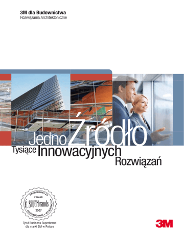 3 M d l a B u d o w n i c t w a R o z w i ąz a n i a A r c h i t e k t o n i c z n e Źr ó d ł o I n n o w a c y j n y c h J e d n o T y s i ąc e T y t u łB u s i n e s s S u p e r b r a n d d l a m a r k i 3 M w P o l s c e R o z w i ąz a ń S p i s t r e śc i Wstęp . . . . . . . . . . . . . . . . . . . . . . . . . . . . . . . . . . . . . . . . . . . . . . . . . . . . . . . . . . . . 02 3M™ VHB™ Taśmy akrylowe do szklenia strukturalnego – przełom w systemach oszklenia ze spoiwem konstrukcyjnym . . . . . . . . . . . . . . . . 03 3M Maty wejściowe Nomad™ . . . . . . . . . . . . . . . . . . . . . . . . . . . . . . . . . . . . . . . . . 05 Folie okienne. . . . . . . . . . . . . . . . . . . . . . . . . . . . . . . . . . . . . . . . . . . . . . . . . . . . . . . 07 Rozwiązania sieciowe 3M™ Enterprise . . . . . . . . . . . . . . . . . . . . . . . . . . . . . . . . . . 11 3M Di-Noc™ - Laminaty dekoracyjne . . . . . . . . . . . . . . . . . . . . . . . . . . . . . . . . . . . 14 Ekrany Vikuiti™ . . . . . . . . . . . . . . . . . . . . . . . . . . . . . . . . . . . . . . . . . . . . . . . . . . . . 17 źr ó d ł o r o z w i ąz a ń J e d n o t y s i ąc e i n n o w a c y j n y c h 0 1 K a żd e g o d n i a p r a c o w n i c y 3 M z n a j d u j ąn o w e s p o s o b y n a d o k o n y w a n i e n i e s a m o w i t y c h o d k r y ć. G d z i e k o l w i e k s ą, e k r o b i ą, k l i e n c i f i r m y w i e d z ą, że m o g ąp o l e g a ćn a f i r m i e 3 M , k t ó r a s p r a w i a , że i c h ży c i e j e s t ła t w i e j s z e i l e p s z e . c o k o l w i J e d n e z n a j b a r d z i e j r o z p o z n a w a l n y c h m a r e k 3 M t o S c o t c h ™, P o s t i t ™, S c o t c h g a r d ™, T h i n s u l a t e ™, S c o t c h B r i t e ™, F i l t r e t e ™, C o m m a n d ™a n d V i k u i t i ™. S łu żąc k l i e n t o m n a c a ły m św i e c i e , p r a c o w n i c y 3 M w y k o r z y s t u j ąs w o j e r z e m y s łi t r a n s p o r t , t e l e k o m u n i k a c j a , d o św i a d c z e n i e , t e c h n o l o g i e i g l o b a l n ąs i łę, b y d o m i n o w a ćn a w i e l u r y n k a c h , m . i n . : p o c h r o n a i z a b e z p i e c z e n i a , o c h r o n a z d r o w i a , p r o d u k t y a p t e c z n e , b i u r o w e i g o s p o d a r s t w a d o m o w e g o . Dzięki bogatej ofercie technologii, produktów i usług możemy zaoferować tysiące praktycznych i pomysłowych rozwiązań dla przemysłu budowlanego. Od najsilniejszych na świecie spoiw po środki zabezpieczające przed korozją. Od folii graficznych pozwalających na stworzenie wyjątkowych rozwiązań dekoracyjnych i informacyjnych po produkty służące zabezpieczeniu, upiększeniu a nawet redukcji kosztów utrzymania. Produkty 3M wnoszą wydajność i wartość do prawie każdego elementu procesu budowlanego. R o z w i ąz a n i a a r c h i t e k t o n i c z n e : • folie dekoracyjne Di-Noc™ • folie dekoracyjne i zabezpieczające do okien • 3M™ VHB™ Taśmy akrylowe do szklenia strukturalnego • maty wejściowe Nomad™ • światłowodowe i miedziane systemy okablowania strukturalnego • produkty do konstrukcji i eksploatacji instalacji elektrycznych 3M jest globalną firmą posiadającą zdywersyfikowany • zabezpieczenia antykorozyjne portfel ponad 30 platform technologicznych. Naszą • systemy do prezentacji audiowizualnych największa siłą jest możliwość dzielenia się wiedzą d o w a pomiędzy naszymi pracownikami, aby rozwiązywać problemy naszych klientów i pomagać osiągnąć im sukces. B u d o w a : Dzięki temu klienci mogą liczyć na to, iż będziemy gotowi • narzędzia ścierne do obróbki metali, drewna i szkła dostarczyć niezawodne rozwiązanie. • taśmy klejące i kleje przemysłowe Dzisiaj i w przyszłości. • produkty ochrony indywidulanej • ochrona osobista (BHP) • maty wejściowe • zabezpieczenia antykorozyjne • produkty do konserwacji instalacji elektrycznych • filtry do wody 0 2 3 M ™ V H B ™ T a śm y a k r y l o w e d o s z k l e n i a s t r u k t u r a l n e g o –p r z e ło m w s y s t e m a c h o s z k l e n i a z e s p o i w e m k o n s t r u k c y j n y m O d p o n a d 1 5 l a t i n ży n i e r o w i e n a c a ły m św i e c i e w y k o r z y s t u j ąt a śm y a k r y l o w e 3 M ™ V H B ™ w s y s t e m a c h s z k l e n i a s t r u k t u r a l n e g o o r a z d o k l e j e n i a p a n e l i z r a m a m i i e l e m e n t a m i u s z t y w n i a j ąc y m i w o b i e k t a c h b u d o w l a n y c h . Jako efekt prawie trzydziestu lat doświadczeń firmy 3M w produkcji i stosowaniu zaawansowanych technologicznie samoprzylepnych materiałów akrylowych opracowana została taśma 3M™ VHB™ o symbolu G23F – do systemów oszklenia ze spoiwem konstrukcyjnym. Podstawowe dane produktu: 3 M ™ V H B ™ T a śm a a k r y l o w a d o s z k l e n i a s t r u k t u r a l n e g o K l e j a k r y l o w y o w y s o k i c h p a r a m e t r a c h N o śn i k p i a n k a a k r y l o w a o z a m k n i ęt y c h p o r a c h G r u b o ść 2 , 3 m m W a r s t w a z a b e z p i e c z a j ąc a k l e j f o l i a p o l i e t y l e n o w a , c z e r w o n a K o l o r 0 3 s z a r y Zalety stosowania dwustronnie klejącej taśmy 3M™ VHB™ G23F - w porównaniu do typowych systemów szklenia „na mokro”: • grubość taśmy wynosi tylko 2,3 mm co rozwiązuje problemy konstrukcyjne, gdy konieczne jest użycie grubszych zestawów szybowych • nie wymaga wielogodzinnego (lub kilkudniowego) utwardzania w zaciskach, zbędna więc staje się powierzchnia potrzebna do składowania paneli w trakcie utwardzania kleju, • eliminuje konieczność stosowania przekładek samoprzylepnych – taśma ma ściśle zdefiniowaną grubość, stanowi jednocześnie dystans i medium klejące • ogranicza ilość odpadów produkcyjnych – taśma jest dostarczana w rolce o konkretnej szerokości, nie występuje więc n
