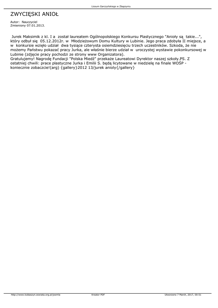 zwycięski anioł - Liceum Garczyńskiego - Wiadomości