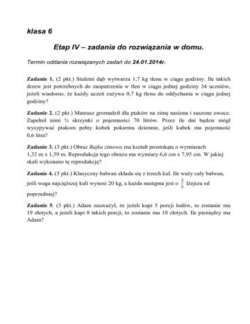 klasa 6 Etap IV – zadania do rozwiązania w domu.