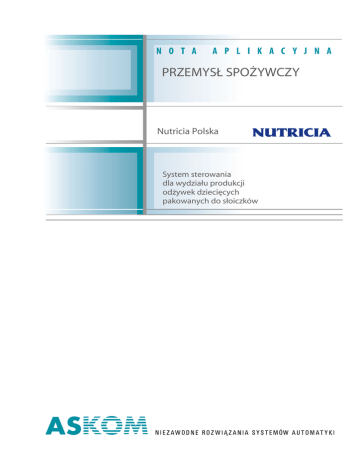 PRZEMYSŁ SPOŻYWCZY Nutricia Polska System sterowania dla wydziału produkcji odżywek dziecięcych pakowanych do słoiczków Dok. Nr PLPN010 Wersja: 22-06-2006 ASKOM® to zastrzeżony znak firmy ASKOM Sp. z o. o., Gliwice. Inne występujące w tekście znaki firmowe bądź towarowe są zastrzeżonymi znakami ich właścicieli. Wszelkie prawa zastrzeżone. Nieautoryzowane rozpowszechnianie całości lub fragmentu niniejszej publikacji w jakiejkolwiek postaci jest zabronione. Wykonywanie kopii metodą kserograficzną, fotograficzną lub inną powoduje naruszenie praw autorskich niniejszej publikacji. ASKOM Sp. z o. o. nie bierze żadnej odpowiedzialności za jakiekolwiek szkody wynikłe z wykorzystywania zawartych w publikacji treści. Copyright © 2006, ASKOM Sp. z o. o., Gliwice ASKOM Sp. z o. o., ul. Józefa Sowińskiego 13, 44-121 Gliwice, tel. +48 (0) 32 3018100, fax +48 (0) 32 3018101, http://www.askom.com.pl, e-mail: [email protected] NOTA APLIKACYJNA NUTRICIA PRZEMYSŁ SPOŻYWCZY Konfiguracja systemu sterowania W roku 2004 firma Nutricia, jeden z czołowych producentów żywności dla dzieci, rozpoczęła modernizację zakładu w Opolu, której celem było zwiększenie możliwości produkcyjnych. Jako dostawca systemu automatyki wybrana została firma ASKOM. Kompleksowa realizacja zadania obejmowała wykonanie projektów części elektrycznej oraz pomiarowej, kompletację dostaw, oprogramowanie systemu sterowania, prace montażowe na obiekcie i uruchomienie systemu. Realizacja inwestycji została podzielona na trzy zasadnicze etapy. Etap pierwszy obejmujący ok. 65% stanu docelowego został zakończony we wrześniu 2004 roku. Obecnie trwają prace nad realizacją etapu 2 oraz wdrożeniem oprogramowania systemu wsadowego. Produkcja na wydziale wytwarzającym odżywki dziecięce pakowane do słoiczków jest typowym przykładem procesu wsadowego – przygotowywane są zadane porcje różnych produktów według określonych receptur. Ze względu na szeroki asortyment produkowanych wyrobów szczególnego znaczenia nabiera możliwość swobodnego tworzenia dużej liczby receptur oraz możliwość łatwego wprowadzania zmian. Dodatkowym kryterium podczas wyboru systemu sterowania była zgodność z normą S88 (ANSI/ISA-88.01-1995). Wszystkie wymienione warunki spełnia wybrany dla realizacji przedsięwzięcia produkt firmy Siemens – PCS7 z pakietem Simatic BATCH w wersji 6.0. Stacja edycji receptur Stacja operatorska 1 OS / Batch Stacja Operatorska 2 OS / WebNavigator Terminal 1 Terminal 2 Terminal 3 Terminal 4 Terminal 5 Sie? zak?adowa Ethernet OS Ethernet Serwer BATCH Redundantny Serwer OS Stacja In?ynierska Industrial Ethernet Stacja AS 1 Stacja AS 2 ... ... PROFIBUS-DP PROFIBUS-DP ET200S ET200S ... ... Micromaster ET200eco Micromaster ... Konfiguracja systemu sterowania. MARZEC 2005 strona 1 NUTRICIA PRZEMYSŁ SPOŻYWCZY NOTA APLIKACYJNA Warstwa operatorska Jednym z podstawowych czynników wpływających na dobór konfiguracji systemu PCS7 było osiągnięcie wysokiej dyspozycyjności i niezawodności. Z tego względu zastosowano strukturę z redundantnym serwerem OS oraz dwoma stacjami klienckimi, a także z niezależnym serwerem Simatic BATCH, który w przyszłości zostanie zredundowany przez połączenie z analogicznym serwerem drugiego z modernizowanych wydziałów. Jedna ze stacji operatorskich wyposażona została w pakiet oprogramowania Batch Control Centre do sterowania produkcją wsadową. Niezależna stacja służy do wprowadzania i edycji receptur. Stacja operatorska 2 została wyposażona w oprogramowanie WebNavigator i będzie pełniła dodatkowo funkcję serwera www, udostępniającego informacje procesowe w sieci zakładowej z poziomu standardowych przeglądarek. Stacje automatyki i urządzenia we/wy Do sterowania procesem przewidziano dwie stacje automatyki AS 416-3. O wyborze standardu wejść / wyjść zdecydowały trzy podstawowe czynniki: prostota i szybkość montażu na obiekcie, elastyczność w doborze konfiguracji oraz możliwość wymiany modułów bez wyłączania pola. Obecnie do obydwu stacji automatyki podłączonych jest łącznie 10 pól ET200S z ponad 500 modułami we/wy. Dodatkową zaletą zastosowania standardu ET200S jest możliwość zastąpienia interfejsu pola przez moduł programowalny, co okazało się być istotne przy realizacji sterowań na tyle szybkich, że nie było możliwe spełnienie wymagań czasowych w konfiguracji klasycznej układu z rozproszonymi elementami wejść/wyjść. Specyfika produkcji na wydziale odżywek wymaga lokalnego nadzoru nad procesem w 11 węzłach produkcyjnych. W tym celu zastosowano dwa typy paneli dotykowych: MP270 z ekranem kolorowym o przekątnej 10” w węzłach obejmujących bardziej złożone fragmenty technologii oraz TP170B z ekranem kolorowym o przekątnej 5.7”w prostszych węzłach technologicznych.. Około stu, czyli niemal połowa napędów zastosowanych w technologii, wymaga regulacji prędkości obrotowej. Dotyczy to silników o bardzo różnych mocach – od 0,37kW po 40kW. Naturalnym rozwiązaniem było zastosowanie przemienników częstotliwości wyposażonych w interfejs PROFIBUS-DP i połączonych ze stacjami automatyki. Wybrano przemienniki częstotliwości firmy Siemens typu Micromaster z rodziny 420 oraz 440, które poza wysokimi walorami użytkowymi zapewniają również łatwą integrację z systemem PCS7. Kolejnym zagadnieniem, które należało rozwiązać było ważenie - docelowo w systemie zostanie użytych 10 wag, obecnie jest ich 7. Do realizacji wszystkich wag wykorzystano procesory wagowe SIWAREX U. Dzięki istnieniu odpowiedniej biblioteki ich integracja z PCS7 nie nastręcza trudności. Bezpieczeństwo instalacji Technologia wydziału została podzielona na 25 grup zatrzymania awaryjnego zgodnie z następującymi zasadami: • każda grupa zlokalizowana jest w tym samym pomieszczeniu, • każda grupa obejmuje logicznie wydzielony fragment technologii, • dla każdej