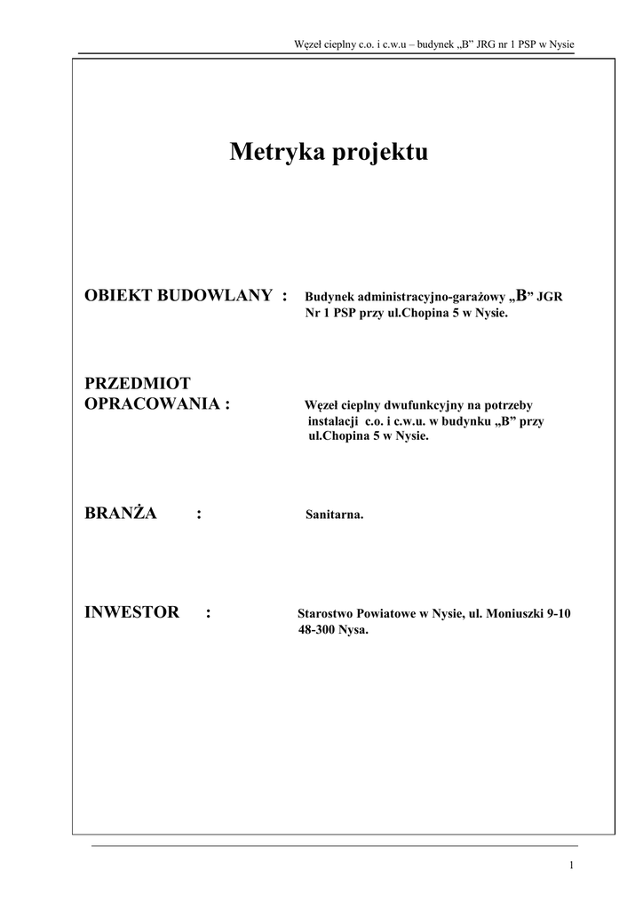 Metryka projektu