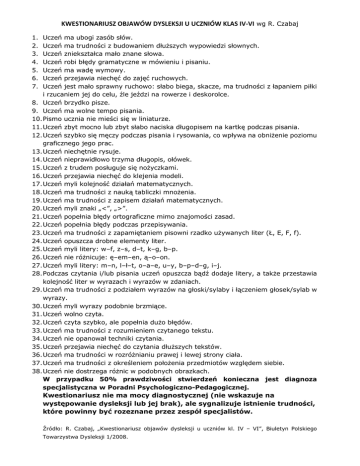 KWESTIONARIUSZ OBJAWÓW DYSLEKSJI U UCZNIÓW