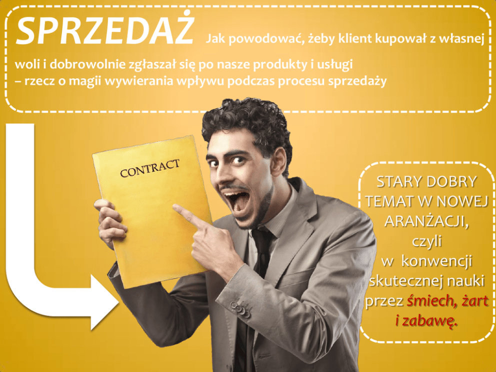 SPRZEDAŻ Jak powodować, żeby klient kupował z własnej woli i dobrowolnie zgłaszał się po nasze produkty i usługi – rzecz o magii wywierania wpływu podczas procesu sprzedaży STARY DOBRY TEMAT W NOWEJ ARANŻACJI, czyli w konwencji skutecznej nauki przez śmiech, żart i zabawę. Jak powodować, żeby klient kupował z własnej woli i dobrowolnie zgłaszał się po nasze produkty i usługi – rzecz o magii wywierania wpływu podczas procesu sprzedaży Sprzedawanie jest zajęciem dla osób, które nie szanują samych siebie. Człowiek dobrze urodzony, pochodzący z odpowiedniej rodziny i posiadający właściwe koneksje – sprzedaży nie dotknie nawet kijem. Fuj! Lekarz nie musi umieć sprzedawać, bo wystarczy kartka na drzwiach. Dyrektor nie musi, bo ma władzę. Ojciec nie musi, bo po prostu wymusi. Nauczyciel też nie musi, bo wystarczy, że postraszy. Wystarczy, że sprzedawca sprzedaje, bo musi. Musi przynieś pieniądze na pensje. Na pensje dla tych, którzy nie splugawią się i nie poniżą sprzedawaniem. Ale to na sprzedawcach stoi cały biznes Każdy…Dosłownie każdy jest sprzedawcą: czy chce, czy nie chce Ale: jesteś sprzedawcą albo złym, albo doskonałym. Podkreśl właściwe. Jeśli wybierasz doskonałym, to… www.eck-prestige.pl tel.(48) 32 738 51 91 e-mail: [email protected] Sprzedawanie ? ! Nigdy w życiu ! Jak tu się przyznać (w Polsce!) do tego, że jestem sprzedawcą? Opinii jest mnóstwo! Oto trzy przykłady. Autentyczne. „Praca sprzedawcy, który zarabia tylko na prowizji, jest nieuczciwa. Dostaje dwadzieścia procent od ceny, albo i więcej. Gdyby nie taki agent krwiopijca, to klient miałby taniej, a czasy są ciężkie, kryzys. Nie można ograbiać rodzin z pieniędzy, i tak już płacimy wysokie podatki…” „Nawet się nie przyznawaj, że sprzedajesz polisy na życie. Będą cię wytykać palcami! W naszej rodzinie nikt tak nisko nie upadł, żeby zostać domokrążcą! Kto to widział, żeby pukać od drzwi do drzwi i wpychać ludziom oszukańcze produkty. Aż dziw, że cię jeszcze nie zamknęli, razem z tą twoja firmą. Rozmawiałem w urzędzie gminy, poszukują gońca. Na jutro jesteś umówiony…” „To hańba! Nie ma gorszej roboty, jak wciskanie klientom ciemnoty i robienie im wody z mózgu. Uczymy się technik manipulacyjnych, które powodują, że klient kupi, czy chce, czy nie chce, i otrzeźwieje dopiero w domu. W ten sposób zdobywamy wrogów, którzy nie dość, że nas nienawidzą, to jeszcze pogardzają. Jakby nie było u nas uczciwej pracy, tylko takie upodlenie! Łażenie po domach i skamlanie, to już lepiej żebrać!” I ja też chyba tak myślałem. Zanim… Zanim nie zostałem agentem sprzedaży, potem kierownikiem zespołu, a wreszcie szefem dużej agencji. Co sprzedawaliśmy? Polisy na życie. Nauki brałem od doświadczonych trenerów i sprzedawców. Dowiedziałem się takich rzeczy, o jakich nie miałem najmniejszego pojęcia. Że sprzedawanie – to najstarszy zawód świata. Że zawodowy sprzedawca – to specjalista w zakresie budowania relacji, zarządzania relacjami, mistrz komunikacji, negocjacji i wywierania wpływu. Fachowiec od przywództwa, słuchania, kierowania… Wiem też, że każdy człowiek jest sprzedawcą, czy mu się to podoba, czy nie. Tylko jeden będzie sprzedawcą znakomitym, a drugi… fatalnym. Zapraszamy na warsztaty szkoleniowe. Zdobędziesz nowe umiejętności i udoskonalisz dotychczasowe… www.eck-prestige.pl tel.(48) 32 738 51 91 e-mail: [email protected] PROGRAM SZKOLENIA Warsztaty umiejętności składają się z sesji szkoleniowej i sesji coachingowej SESJA I Ćwiczenie integracyjne grupy Określenie indywidualnych celów szkolenia. Natychmiastowe przeformułowanie programu szkolenia w taki sposób, aby każdy z Uczestników osiągnął swój cel Podział uczestników na zespoły problemowe Zadanie zespołowe główne. Referowanie, dyskusja panelowa WPŁYW - indywidualne określenie, na kogo i kiedy mamy wpływ Zdecydowanie, w jaki sposób wywiera się wpływ na innych www.eck-prestige.pl tel.(48) 32 738 51 91 e-mail: [email protected] 1. Klasyczny trójkąt handlowy Klient Produkt Sprzedawca Czy sprzedawca ma wpływ na klienta, czy nie ma? Na co sprzedawca ma rzeczywisty wpływ? Co należy uczynić, aby ten wpływ zaakceptować i wzmocnić? www.eck-prestige.pl tel.(48) 32 738 51 91 e-mail: [email protected] 2. Cechy profesjonalnego sprzedawcy wiedza branżowa, wiedza sprzedażowa, image sprzedawcy wizerunek sprzedawcy ---------------------------------------------------------------------------------------------------------------------------------------------------------- Sprzedaż Praktyczna definicja sprzedaży Kompatybilność „sprzedawania” z „kupowaniem” www.eck-prestige.pl tel.(48) 32 738 51 91 e-mail: [email protected] 3. Zdefiniowanie pojęcia przywództwa w sprzedaży definicja przywództwa; cechy przywódcy; poziomy przywództwa charyzma w sprzedaży; budowanie relacji sprzedażowych ---------------------------------------------------------------------------------------------------------------------------------------------------------4. Komunikowanie interpersonalne definicja komunikacji komunikowanie werbalne, parawerbalne, niewerbalne; rzeczowe „mowa ciała” i emocjonalne prawa perswazji narzędzia skutecznej komunikacji okno Johari – trudne zachowania – narzędzia asertywnego zachowania w relacjach z klientami udrażnianie kanałów przepływu informacji pomiędzy sprzedawcą a klientem www.eck-prestige.pl tel.(48) 32 738 51 91 e-mail: [email protected] 5. Aktywne pozyskiwanie klientów prospecting koło sprzedaży: ścieżka krytyczna zakresu obowiązków koło kupowania: tajemnica skuteczności sprzedaży narzędzia utrzymywania poziomu sprzedaży w trudnych warunkach rynkowych skąd brać klientów? ------------------------------------------------------------------------------------------------------------------------------------------------
