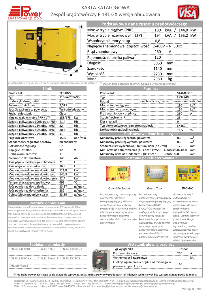 KARTA KATALOGOWA Zespół prądotwórczy P 181 GX wersja