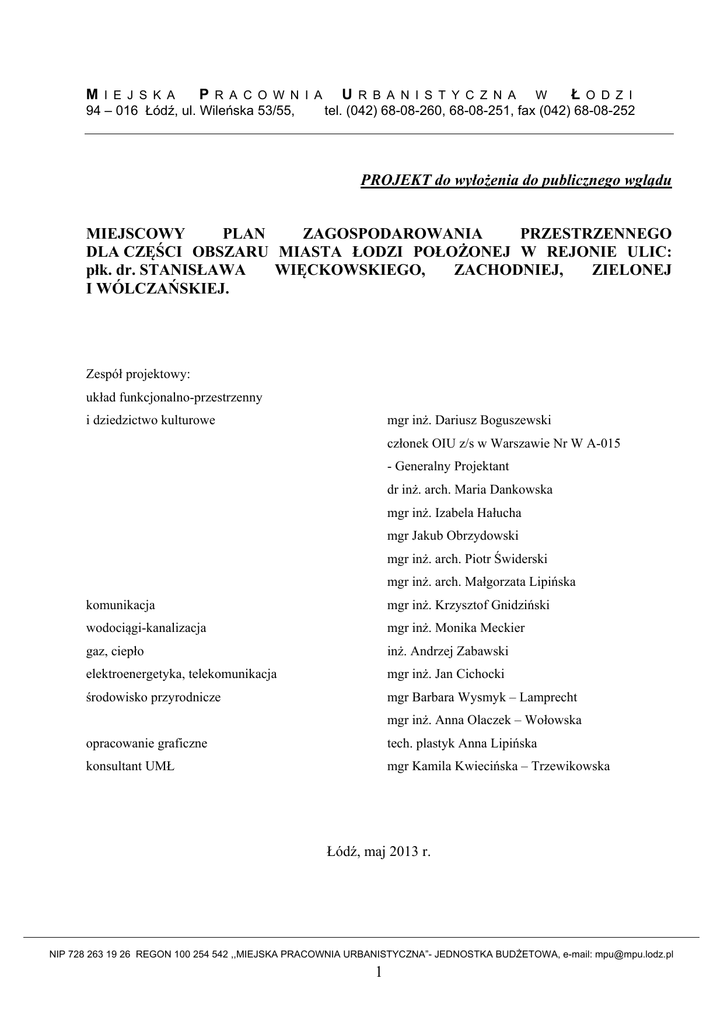 1 PROJEKT do wyłożenia do publicznego wglądu MIEJSCOWY