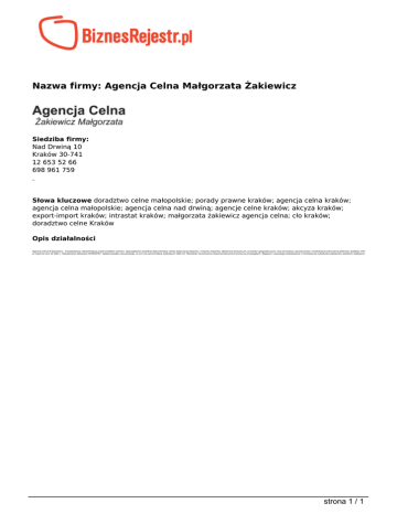 Nazwa firmy: Agencja Celna Małgorzata Żakiewicz