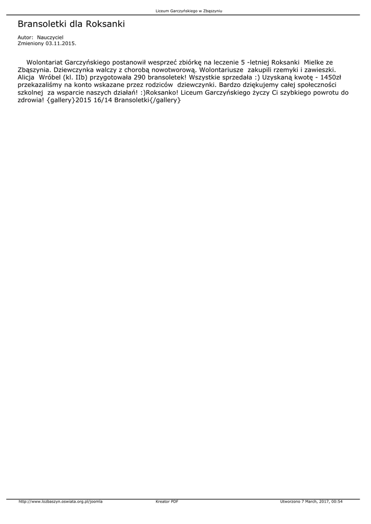 szkolnej za wsparcie naszych działań! :)Roksanko! Liceum Garczyńskiego życzy Ci szybkiego powrotu do