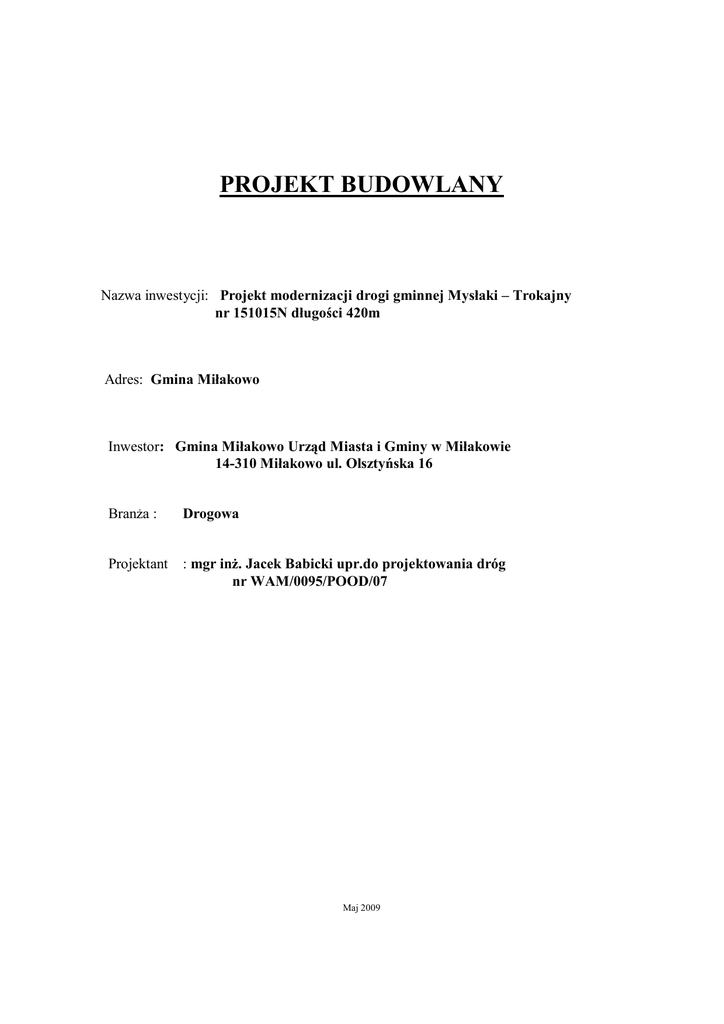 opis techniczny - Urząd Miejski w Miłakowie