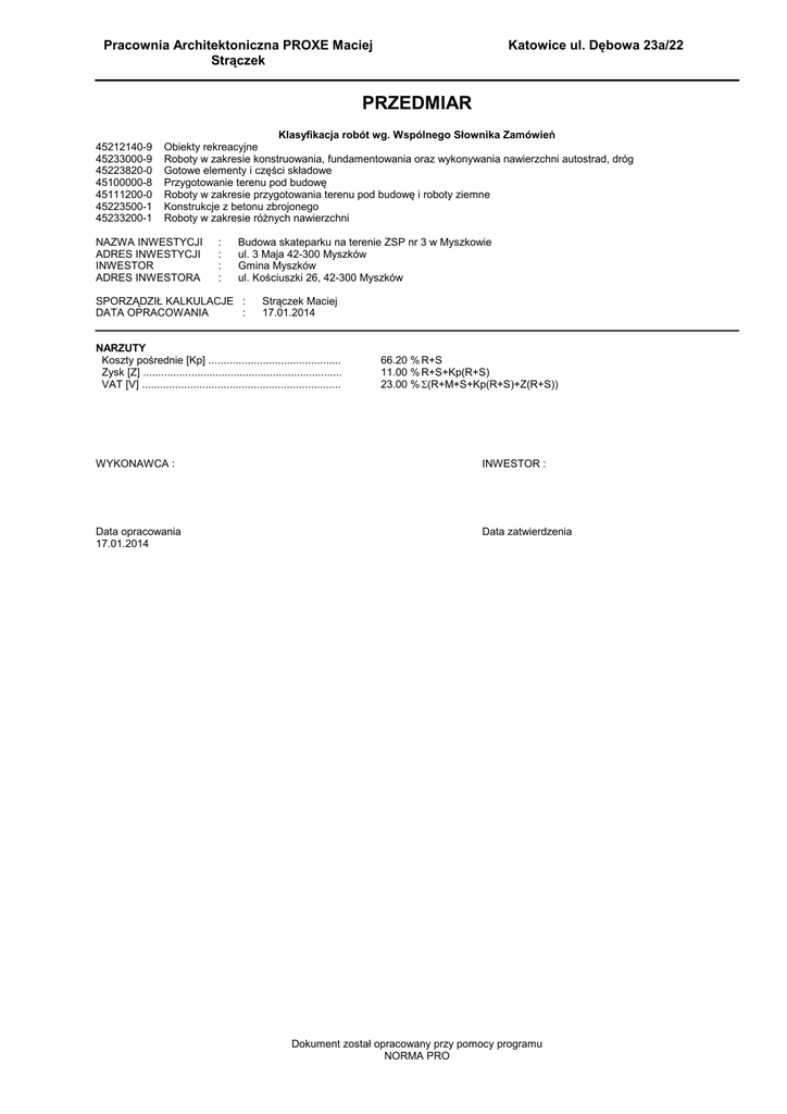 Kosztorys skate-park - przedmia