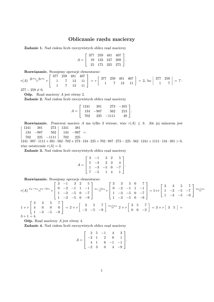 Obliczanie rzędu macierzy