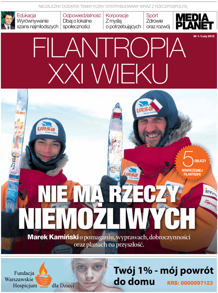 NIEZALEŻNY DODATEK TEMATYCZNY DYSTRYBUOWANY WRAZ Z RZECZPOSPOLITĄ Edukacja Odpowiedzialność Korporacje Wyrównywanie Dbaj o lokalne Z myślą szans najmłodszych społeczności o potrzebujących Sport Zdrowie oraz rozwój FILANTROPIA XXI wieku Nr 1 / Luty 2012 5 OBLICZY nowoczesnej filantropii Nie ma rzeczy niemożliwych Marek Kamiński o pomaganiu, wyprawach, dobroczynności oraz planach na przyszłość. NIEZALEŻNY DODATEK TEMATYCZNY DYSTRYBUOWANY WRAZ Z RZECZPOSPOLITĄ 2 wyzwania Nowoczesna filantropia to działania strategiczne, przemyślane, nakierowane na rozwiązanie konkretnego problemu społecznego. To jednocześnie wiele możliwości zaangażowania się w działalność filantropijną, w zależności od naszych zainteresowań, motywacji i zasobów. Nowoczesna filantropia dla każdego F ilantropia nie jest zjawiskiem nowym. W Polsce ma ona jednak przerwaną historię. W okresie PRL działające przed wojną fundacje zostały zlikwidowane, a o działalności prywatnych darczyńców nie mówiono publicznie. W polskim społeczeństwie znaczenie słowa „filantropia” tradycyjnie kojarzy się z XIX-wieczną działalnością charytatywną, z doraźną pomocą dla najuboższych. Słowo to współcześnie niechętnie używane jest przez dziennikarzy, a same osoby zaangażowane w działalność filantropijną, nie nazywają się filantropami. Rozwój filantropii Mimo, że słowo „filantropia” ciągle nie jest w częstym użyciu, zjawisko nowoczesnej filantropii rozwija się całkiem prężnie. W Polsce działają wyspecjalizowane fundacje i stowarzyszenia, które wspierają różne grupy społeczne i przyczyniają się do rozwiązywania problemów społecznych.Coraz więcej firm angażuje się w działania społeczne,które prowadzone są w sposób profesjonalny i odpowiedzialny.Niemała,choć niezbadana, wydaje się być filantropia prywatna. Strategia i skuteczność Jaka jest nowoczesna filantropia? Niewiele ma wspólnego z XIX-wiecznym doraźnym i przypadkowym „rozdawnictwem”. To przede wszystkim działania strategiczne, przemyślane, nakierowane na konkretny cel. W odróżnieniu do modelu tradycyjnego, w relacji darczyńca-obdarowany ten ostatni traktowany jest podmiotowo, często wsparcie obejmuje nie tylko środki finansowe, ale także pomoc merytoryczną (np. szkolenia, porady). To działania długofalowe, starannie zaplanowane, zakładające osiągnięcie pożądanych efektów w określonym czasie. Darczyńca mierzy rezultaty udzielanego przez niego wsparcia,monitoruje postępy, jest gotowy przyznać się do błędów i szukać skuteczniejszych rozwiązań, również w konsultacji z ekspertami. Jako, że niektóre działania, „Filantropia to coraz częściej szeroko pojęta inwestycja społeczna.” w szczególności te innowacyjne, są obarczone ryzykiem, zakładana jest elastyczność, możliwość zmian. Nowoczesna filantropia to wreszcie profesjonalne zarządzanie środkami przeznaczonymi na działania społeczne, pomnażanie i inwestowanie kapitału. Filantropia to coraz częściej szeroko pojęta inwestycja społeczna. Satysfakcja z pomagania Piotr Szczepański Przewodniczący Zarządu Forum Darczyńców w Polsce SŁOWNICZEK POJĘĆ NIEZBĘDNYCH Darczyńca – ofiarodawca (osoba indywidualna, instytucja, firma), który przekaa zuje potrzebującym środki finansowe lub rzeczowe. Dobrze jest, gdy darczyńc nie celu, onego wyznacz do dąży i a działani swoje pomaga z życzliwości, planuje rozdaje swojego majątku lecz inwestuje go społecznie. nieruDarowizna – przekaza nie części swojego majątku (pieniądze, ruchomości, w zacoś nam da any obdarow że ania, oczekiw bez we) chomości, prawa majątko prawo Daje stana. wykorzy być ma cel jaki na i kogo przez określić mian. Można do skorzystania z odpisu podatkowego. Jednocześnie nowoczesna filantropia, w dobie wycofywania się Państwa z wielu sfer społecznych, to szerokie spektrum obszarów, w które możemy się zaangażować i szereg narzędzi, które nam to zaangażowanie ułatwiają. Każdy może znaleźć formę działalności najbardziej odpowiadającą jego motywacjom, możliwościom, oczekiwaniom i aspiracjom. Filantropia to ciekawa ścieżka, która przynosi wiele satysfakcji każdemu, kto na nią wejdzie. Mam nadzieję, że lektura tego dodatku będzie dla Państwa źródłem inspiracji i motywacji do zaangażowania się w działania filantropijne! polecamy strona 8 „Język i forma przekazu tradycyjnej edukacji kulturalnej są często postrzegane przez młodych ludzi jako nieatrakcyjne i niezrozumiałe”. 1 edYcja – Luty 2012 Project Manager: Bartosz Danel Tel.: +48 22 401 75 23 E-mail: [email protected] Business Developer: Beata Kaczmarek Editorial Manager: Paweł Adamczak Managing Director: Adam Jabłoński Treść: Magdalena Czarnkowska Agata Wojdalska Dystrybuowane z: Rzeczpospolita Druk: Presspublica Sp. z o.o. Nakład: 115 000 egzemplarzy Skład: Graphics & Design Studio, Marcin Ziółkowski, www.gdstudio.pl Fotografie: shuuterstock.com, istockphoto.com, zasoby własne Kontakt z Mediaplanet: Fax: +48 22 412 01 93 E-mail: [email protected] Mediaplanet jest wiodącym domem wydawniczym na rynku europejskim. Specjalizujemy się w tworzeniu wysokiej jakości publikacji tematycznych w prasie codziennej, online oraz broadcast. Mediaplanet nie ponosi odpowiedzialności za treść reklam. Fundusz filantropijny – narzędzie filantropijne, które umożliwia darczyńc y realizację zaplanowanego przez siebie projektu społecznego. Tworzony na podstawie umowy między fundatorem a organizacją odpowiedzialną za administ rowanie funduszem i realizowanie jego celów. Korzysta z osobowości prawnej organizacji, przy której został założony (osoby wspierające fundusz mogą skorzysta ć z ulg podatkowych). Organizacja pozarządowa – organizacja założona z inicjatyw y obywateli, działająca na rzecz wybranego interesu publicznego i niedziałająca dla osiągnięcia zysku. Najczęsts