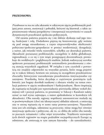 PRZEDMOWA Przedmowa ta ma na celu ukazanie w szkicowym ujęciu problematyki podjętej przez autora, motywacji i pobudek, którymi się kierował, a także zaprezentowanie własnej perspektywy i interpretacji rzeczywistości w czasach dynamicznych przeobrażeń społeczno-politycznych. Od zarania państwa pojawia się i nie słabnie dyskusja nad jego istotą, funkcjami i rolą. Dodatkowo piętrzą się kontrowersje, gdy weźmie się pod uwagę nieuniknione, a często nieprzewidywalne okoliczności polityczno-społeczno-gospodarcze w postaci modernizacji, deregulacji, a nawet, jak twierdzi wielu teoretyków, schyłku czy destrukcji państwa. Aktualność poruszanej problematyki, szczególnie w dobie globalizacji, regionalizacji, a co się z tym wiąże postępującej decentralizacji, prowokuje do wnikliwych i pogłębionych studiów. Jednak nadzwyczaj szerokie spektrum poruszanej problematyki uniemożliwia potraktowanie z równą atencją wszystkich zagadnień. W związku z tym czytelnik z pewnością nie znajdzie odpowiedzi na wszystkie pytania, które mogą pojawić się w trakcie lektury, bowiem nie zostaną tu szczegółowo przedstawione chociażby historycznie warunkowane przeobrażenia instytucjonalne czy ustrojowe. Przesłanką, która decyduje o częściowym pominięciu tych kwestii, jest bogaty dorobek naukowy z obszaru wiedzy na temat ewolucji państwa w ujęciu strukturalnym i funkcjonalnym. Skoro inspiracją do napisania tej książki jest wprowadzenie pierwiastka debaty wokół dzisiejszej roli i pozycji państwa, to przemiany w Szkocji i Katalonii należy uznać za nad wyraz zajmujące, a nawet spektakularne w kontekście ich aktualności. Oba narody, regiony, wspólnoty autonomiczne znalazły się w porównywalnym (choć nie identycznym) układzie zdarzeń, a zmierzają one w stronę wpisania się w nowe ramy prawno-ustrojowe. Naturalnie inna jest ich etiologia, odmienne są przyczyny, różne mogą być również motywacje społeczne i polityczne, ale to, co zbliża do siebie oba narody, to poczucie tożsamości i silne więzi terytorialne. Trajektorie rozwojowe tych dwóch regionów na mapie podziałów socjopolitycznych Europy są odmienne, ale zmierzają w tym samym kierunku – do samodzielności. 8 PRZEŁOMY PAŃSTWA WSPÓŁCZESNEGO Szkocja sukcesywnie wypracowywała własny model autonomii – dewolucję. Wykorzystała sytuację wywołaną wdrażaniem procesów integracyjnych o silnych tendencjach do regionalizacji, a w konsekwencji do dyspersji władzy w wielopoziomowym systemie rządzenia Unii Europejskiej. Przekazywanie kompetencji na inne niż dotychczasowe poziomy organizacyjne państwa wywołało tę erupcję niekonwencjonalnych zachowań i nieszablonowych rozwiązań. Strukturalny kontekst i nowy sposób rządzenia przyjmuje więc otwartą formułę wielopoziomowej współpracy i koordynacji. W Katalonii te mechanizmy także uwolniły nowe nadzieje na pełną autonomię i wskazały inne możliwości na osiągnięcie tego celu. Dotychczasowa aktywność i zaangażowanie polityczne obu narodów doprowadziło do możliwości swobodnej wypowiedzi i określenia własnego stanowiska w drodze referendum. Referenda te dotyczące podjęcia ostatecznej decyzji przez obywateli w sprawie pełnej autonomii ich regionów zostały zaplanowane na 2014 r., choć wątpliwa jest trwałość osiągniętego kompromisu w Hiszpanii. Paradoksalnie za stworzenie tych sprzyjających okoliczności odpowiedzialna jest Unia Europejska, a dokładniej mechanizmy wielopoziomowego systemu rządzenia i transferu kompetencji. Zmiany te wywołały burzliwą dyskusję, zarówno wśród teoretyków, jak i praktyków nad rolą państwa współczesnego w obliczu globalizacji, europeizacji i regionalizacji. Przedłożone czytelnikowi opracowanie jest autorskim rozumieniem wybranej rzeczywistości przemian zachodzących obecnie w europejskiej przestrzeni politycznej. Świadomie więc wyselekcjonowano te wątki, które zbliżają do odpowiedzi na szereg nurtujących pytań, zaś inne zostały sprowadzone jedynie do uzasadnionego minimum. Nie jest to jednak marginalizacja czy pomniejszanie wagi ich doniosłości w tworzeniu systemowych rozwiązań ewoluującego państwa współczesnego. Dotyczy to m.in. generalnych własności systemów partyjnych, systemu polityczno-prawno-administracyjnego Unii Europejskiej czy historycznego procesu państwowotwórczego analizowanych wybranych przypadków. Przyczyn takiej selekcji jest wiele, ale jedną z nich (w zasadzie najistotniejszą) jest bogaty i wyczerpujący dorobek naukowy środowisk akademickich, zarówno polskich, jak i zagranicznych. Dlatego w niniejszej książce zostały szczególnie zaakcentowane Przedmowa 9 te in statu nascendi zjawiska i procesy polityczne, których obecnie jesteśmy świadkami. Ponadto diagnoza zmian w obu analizowanych przypadkach doprowadziła do rozważań nad współczesnym obliczem przeobrażeń globalnych, myśleniem o państwie w ujęciu tradycyjnym, odrzuceniem schematycznych i obiegowych opinii odnośnie demokracji partycypacyjnej czy samego reżimu politycznego. Zatem wspomniane przypadki Katalonii i Szkocji stały się przyczynkiem, a nawet pretekstem do szerszej dyskusji nad kryzysem państwa tradycyjnego (suwerennego i narodowego). Stanowią również punkt wyjścia dla koniecznej obecnie debaty nad ideą państwa współczesnego i jego pragmatyką w kontekście zachodzących przeobrażeń w regionach, państwach i w środowisku międzynarodowym. Wobec tego pojawiają się dodatkowe pytania: – jaki wpływ na inne państwa będą miały zmiany zachodzące obecnie w Szkocji i Katalonii?, – jak wdrażane mechanizmy systemu wielopoziomowego rządzenia Unii Europejskiej wpłyną na kształt i charakter państw członkowskich?, – do jakiego stopnia można posunąć się w procesach regionalizacji? Urlich Beck i Edgar Grande w książce, pt.: Europa kosmopolityczna. Społeczeństwo i polityka w drugiej nowoczesności1 pis