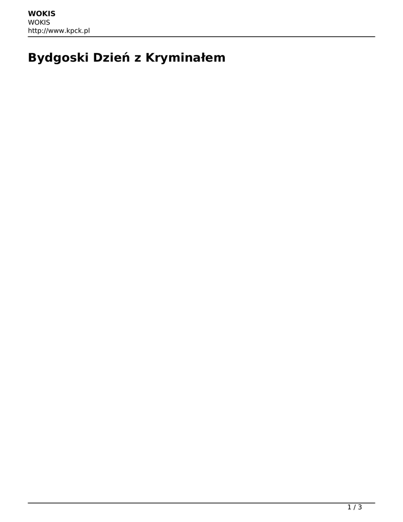 WOKIS WOKIS http://www.kpck.pl Bydgoski Dzień z Kryminałem 1/3 WOKIS WOKIS http://www.kpck.pl 2/3 WOKIS WOKIS http://www.kpck.pl Instytut Filologii Polskiej i Kulturoznawstwa Uniwersytetu Kazimierza Wielkiego w Bydgoszczy, Kawiarnia Cafe Kino, Wojewódzki Ośrodek Kultury i Sztuki w Bydgoszczy oraz Kinowy Klub Dyskusyjny KAKADU zapraszają na BYDGOSKI DZIEŃ Z KRYMINAŁEM... 4 czerwca odbędzie się spotkanie z prof. Mariuszem Czubajem ze Szkoły Wyższej Psychologii Społecznej w Warszawie, antropologiem kultury, znanym specjalistą od literatury kryminalnej, autorem książek Etnolog w Mieście Grzechu. Powieść kryminalna jako świadectwo antropologiczne i Krwawa setka. Sto najważniejszych powieści kryminalnych (razem z Wojciechem Bursztą) o 13.30 w sali Rady Wydziału Humanistycznego przy ul. Jagiellońskiej 11. Prof. Czubaj wygłosi wykład Literatura i film kryminalny w Polsce, jak również opowie o swojej najnowszej książce Martwe popołudnie. Zapraszamy również na godz. 16.00 do Kawiarni Cafe Kino na projekcję filmu "M-Morderca" (1931 r.) - ul. Długa 32. Po seansie w pomieszczeniach kawiarni odbędzie się dyskusja i afterparty z udziałem filmoznawców. Julian Waszak Opiekun Kinowego Klubu Dyskusyjnego KAKADU 3/3 Powered by TCPDF (www.tcpdf.org)