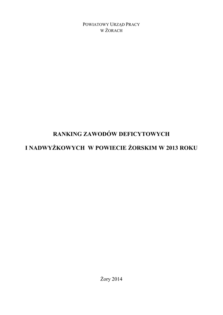 Monitoring zawodów nadwyżkowych i deficytowych za 2013 r.