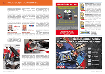 20 | MOTORYZACYJNE ŚRODKI SMARNE Nie ma z tym problemów Odporność z zapasem Wysoka temperatura wpływa na zmianę lepkości olejów. Im wyższy wskaźnik lepkości posiada olej, tym bardziej jest on odporny na zmiany lepkości. W przypadku najnowszych rozwiązań w technologii olejów silnikowych nie ma problemu z dostosowaniem się do zmiany temperatury, są to zwykle oleje Wysokie temperatury zawsze generują większe obciążenie dla silnika i wielu innych podzespołów. W przypadku oleju silnikowego, który odpowiada także za mowanych producentów zawsze z zapasem są przygotowane do pracy w skrajnych warunkach. Na przykład nasz produkt syntetyczny Mobil 1 New Life 0W-40 jest używany przez Porsche na całym świecie, bez względu na miejsce i warunki eksploatacji. Nie wprowadzamy zmian do formulacji ze względu na strefy klimatyczne – to jeden i ten sam produkt do silników Porsche na każdą szerokość geograficzną. Wysokie temperatury to oczywiście większe obciążenie, jednak w przypadku wysokiej jakości produktów jazda w miejskich korkach i w dużych upałach to nie powód do obaw. Chociaż częstsza wymiana oleju silnikowego zgodnie z zaleceniami producenta jeszcze nikomu nie zaszkodziła, to nie ma uzasadnienia jej wcześniejszego wykonania przy normalnej eksploatacji pojazdu. Olej silnikowy należy zawsze wybierać zgodnie z zaleceniami producenta pojazdu. Rekomendowane klasy lepkości – letnia i zimowa – na pewno sprawdzą się w naszych warunkach odprowadzanie nadmiaru ciepła, ważne jest przede wszystkim stosowanie wy sokiej jakości produktów. Najlepiej, jeżeli są to oleje w pełni syntetyczne, ponieważ są one najbardziej odporne na skrajnie trudne warunki eksploatacyjne. W bardzo wysokich temperaturach pracy silnika, które może potęgować wysoka temperatura otoczenia, film olejowy staje się cieńszy i jest bardziej podatny na zerwanie. To może prowadzić do uszkodzenia silnika. Rozwiązanie jest proste: wysokiej jakości oleje od reno- klimatycznych, a jedyne pytanie może dotyczyć bazy olejowej. Produkty mineralne w niskich temperaturach szybko gęstnieją i tracą zdolność łatwego dotarcia do punktów smarowania. Olejów wyprodukowanych na bazie syntetycznej te problemy nie dotyczą i dlatego zapewniają one łatwy rozruch w miesiącach zimowych. Z kolei w wysokich temperaturach i przy dużym obciążeniu produkty syntetyczne są stabilniejsze w porównaniu z olejami mineralnymi i zapewniają optymalną ochronę. n Tomasz Piergies Orlen Oil syntetyczne o wysokich wskaźnikach lepkości. Producenci samochodów, decydując o zaleceniach względem oleju (poziomach jakości i lepkości), biorą pod uwagę zmianę warunków atmosferycznych, w tym możliwość pojawienia się ekstremalnych dla danej strefy klimatycznej temperatur. W przypadku starszych silników i tych, do których stosuje się sezonowe rozróżnienie klas lepkościowych przy wyższych temperaturach, zaleca się aplikację olejów o wyższych klasach lepkościowych. Przemysław Szczepaniak ExxonMobil Poland ŚĆ NOWO PLATFORMA GOLO ŚĆ NOWO Pełen zestaw adapterów w standardzie Nie musisz kupować co roku aktualizacji Bezpłatna aktualizacja przez 12 miesięcy Diagnozuj ponad 70 marek pojazdów, obsługuj swoich klientów przez Internet, gdziekolwiek w danej chwili są. * warunkiem skorzystania z promocji jest przedstawienie faktury zakupu na posiadany sprzęt na kwotę minimum 3333 zł netto. Dodatkowo, dla chętnych do skorzystania z tej akcji promocyjnej przewidziana jest możliwość odkupienia swojego starego przyrządu za 800 zł netto. RAVENOL CVTF NS3/J4 Fluid – pełnosyntetyczny płyn nowoczesnej generacji typu CVTF do przekładni bezstopniowych CVT (Continuosly Variable Transmision Fluid), przygotowany na bazie PAO ze specjalnymi dodatkami uszlachetniającymi i inhibitorami, gwarantującymi znakomite funkcjonowanie przekładni CVT. Zaprojektowany specjalnie do przekładni CVT firmy JATCO CVT8 JF016E/ JF017E. Do zastosowania w wielu modelach marki Nissan, Mitsubishi, Renault Koleos 2014, Samsung QM5 2013, Peugeot 4008 2014, Citroen C4 Aircross 2014 i innych modelach z przekładniami JATCO JF016E lub JF017E. Skaven Sp. z o.o. www.ravenol.pl [email protected] tel. 58 775 01 15 Untitled-1 1 Autonaprawa | Październik 2015 ŚĆ NOWO RAVENOL ATF DSIH 6 – pełnosyntetyczny płyn typu ATF, do przekładni automatycznych, na bazie PAO ze specjalnymi dodatkami uszlachetniającymi i inhibitorami. Specjalny płyn do 6-biegowych przekładni automatycznych firmy Drivetrain Systems International Holdings (DSIH) stosowanych w pojazdach SsangYong KYRON, ACTYON, ACTYON SPORTS, Geely GC7, GX7, SC7 i EC8. Fot. FExxonMobil, Orlen Oil syntetycznych i tej samej lepkości kinematycznej może wykazywać nawet kilkakrotnie niższe eksploatacyjne zużycie. Poza tym badania wykazują, iż niska wilgotność względna powietrza zmniejsza szybkość procesów starzenia olejów silnikowych, a wysoka je przyspiesza. Wilgoć wpływa bowiem niekorzystnie na jakość i przydatność olejów silnikowych, więc przy jej zwiększonym oddziaływaniu należałoby wymian dokonywać częściej. W tych samych badaniach nie stwierdzono istotnej zależności odparowywanie oleju od wilgotności względnej powietrza. Nie inwestuj w swój dotychczasowy tester diagnostyczny Oddaj go w rozliczeniu i kup najnowszy tester LAUNCH X-431 PRO za jedyne 3333 zł netto* RAVENOL Extra Fuel Economy – pierwszy na świecie olej silnikowy licencjonowany i dopuszczony przez API o specyfikacji API SN i lepkości SAE 0W-16. Pełnosyntetyczny, lekkobieżny olej silnikowym wyprodukowanym w technologii CleanSynto®. Do wymagających silników o wysokich osiągach, benzynowych i wysokoprężnych w samochodach osobowych. Sprawdzony w praktyce i wypróbowany w podzespołach w pojazdach Honda 08215-99974, 08216-99974, 08232-P99S1 LHE, Honda Ultra Next, Ultra Green, Hybrid Engine Nissan KLANM-01A04 Extra Save X Eco, Mitsubishi MZ10