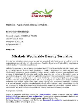 Miszkolc Węgierskie Baseny Termalne - Eko