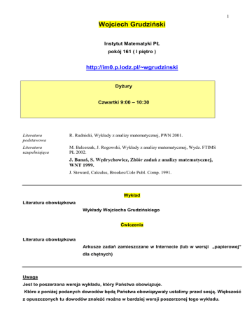 M. Balcerzak, J. Rogowski, Wykłady z analizy matematycznej, Wydz. FTIMS
