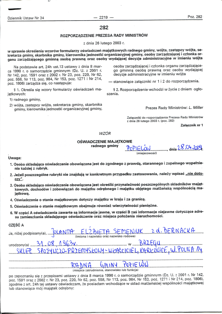 § 1 . Okresla si? wzory formuiarzy oswiadczen ma§ 2. Rozporza_dzenie wchodzi w zycie z dniem ogtojgtkowych: