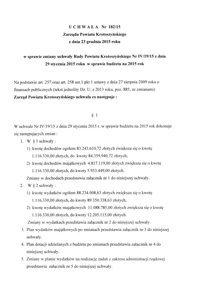 UCHWA Ł A Nr 182/15 Zarządu Powiatu Krotoszyńskiego z dnia 23