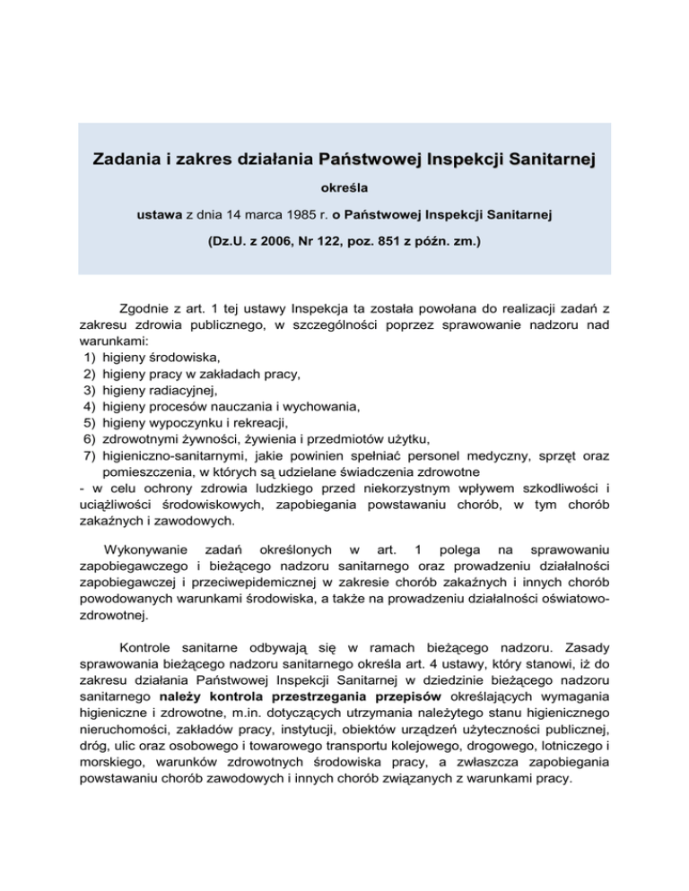Zadania i zakres działania Państwowej Inspekcji Sanitarne jj