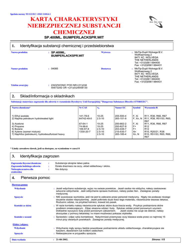 3323 SP.400ML. BUMPERLACKSPR.WIT (Polish) MSDS Wetgeving
