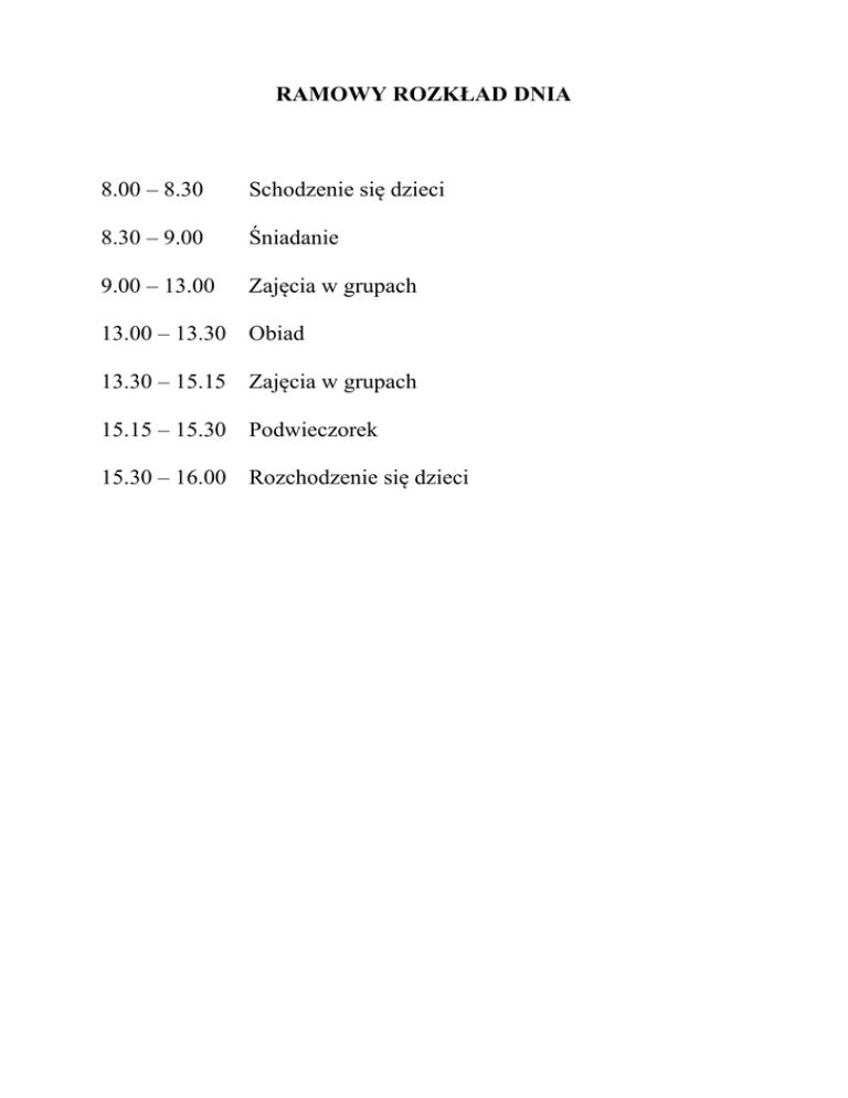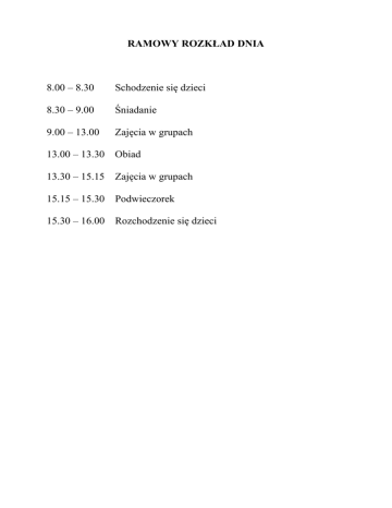 ramowy rozkład dnia