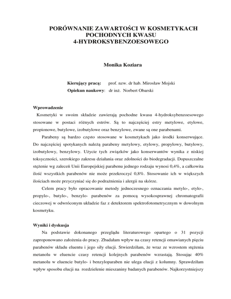 porównanie zawarto ci w kosmetykach pochodnych kwasu 4